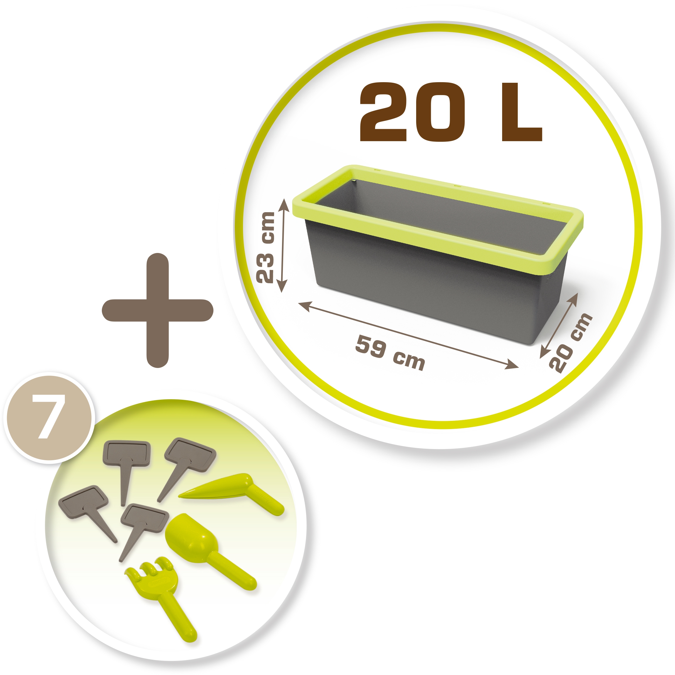 Smoby vastupidava taimepotiga saavad ka kõige pisemad aiatööd lõbusalt õppida, muidugi lõbusalt! Omadused: – Lisatarvikute hulka kuuluvad: labidas, reha, kast ja 4 taimemarkerit. – Pott mahutavusega 20 liitrit. – Ideaalne konteiner ürtide või lillede istutamiseks. – Veepeetus (põhja saab puurida, et võimaldada äravoolu). – Sellel on 4 plaati, tänu millele saame istutatud taimede nimed üles kirjutada. – Kvaliteetne töötlus tagab toote kasutusaja palju aastaid. Smoby on Prantsusmaa suurim ja populaarseim mänguasjabränd ning üks parimaid mänguasjatootjaid maailmas. Selle kaubamärgi maine räägib enda eest ning pakkumise laius ja sortimendi mitmekesisus kinnitavad selle ettevõtte staatust. Smoby on kuulus kõikvõimalike mänguasjade poolest, kuid erilist tähelepanu tuleks pöörata lastemajadele, aiamänguasjadele ja pealesõitudele.