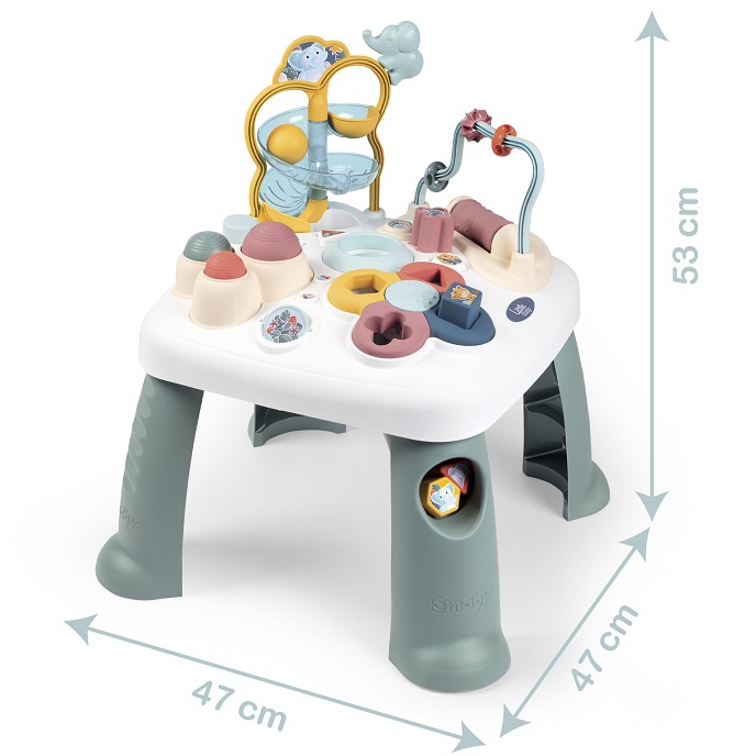 Little Smoby sari loodi kõige väiksematele lastele mõeldes. Siit leiate palju mänguasju – garaaže, sõiduteid, kööke ja väikseid mänguasju. Kõik on tehtud pastelsetes toonides. Need on laste poolt armastatud mänguasjad – täiesti uues versioonis. Omadused: – interaktiivne laud erinevate mänguvõimalustega, – arendab motoorseid oskusi läbi mängu, – omab palju mängu toetavaid funktsioone – kujusorteerija, pallirada, aabits, sarved ja pöörlev peegel, – komplekti kuulub ka ragulka palliviskamiseks, mis võimaldab treenida motoorseid oskusi ja kõige väiksemaid.