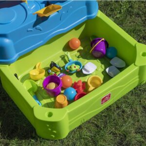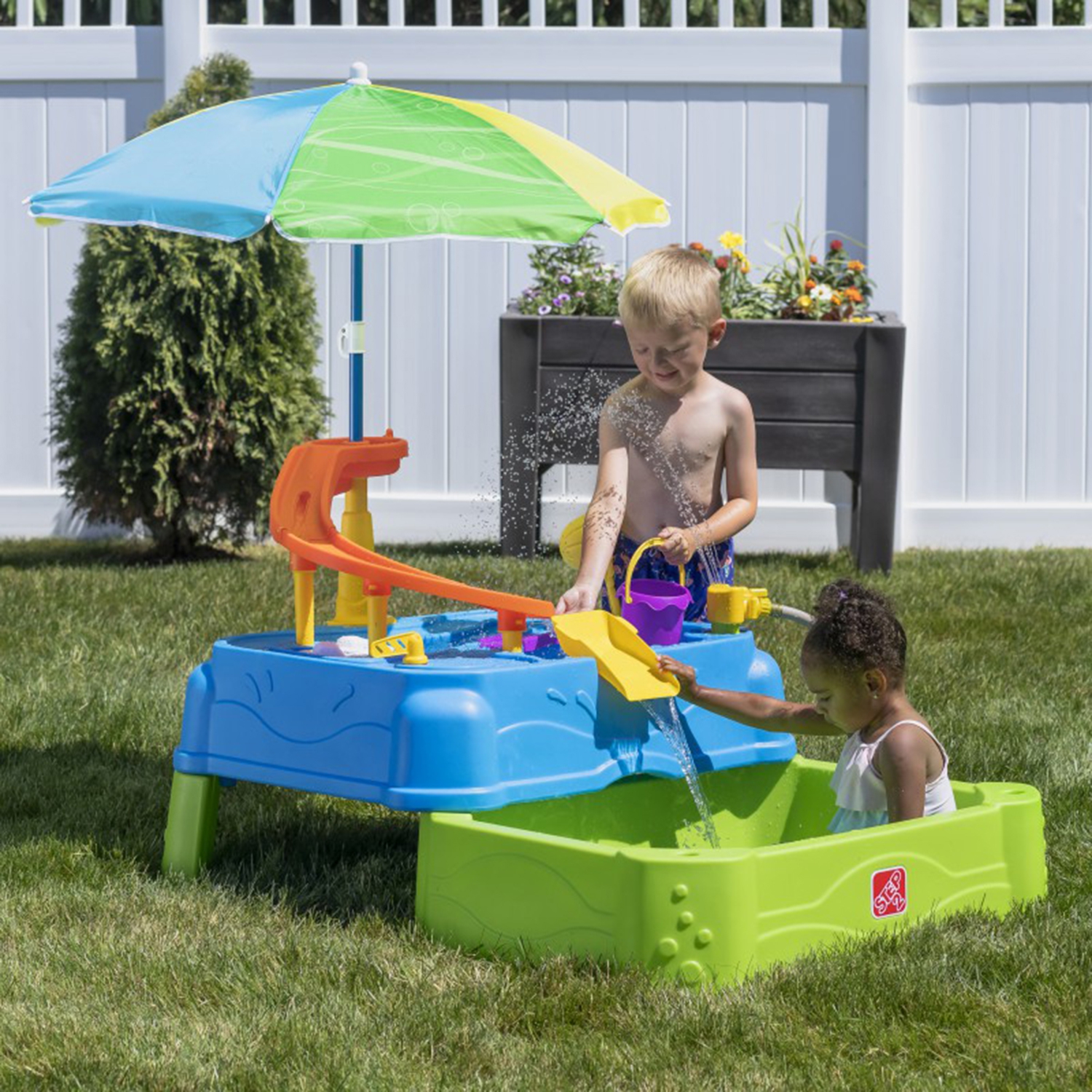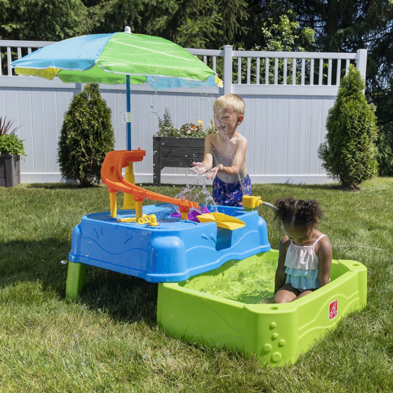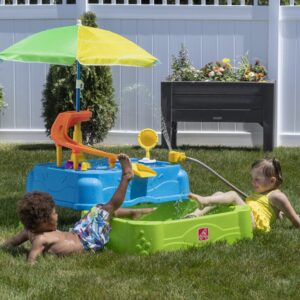 See 2-in-1 veelaud lastele õues mängimiseks sisaldab suurt vihmavarju, paate, kaatreid ja teisaldatavat tila, mis toimib süsteemina vee valamiseks alla paigaldatud basseini. Basseini saab peita laua alla, nii et see võtab pärast mängimist vähem ruumi. Ülemine osa mahutab 15 liitrit vett ja bassein alla umbes 60 liitrit. Omadused: – Võimalus ühendada aiavoolik vihmutiga vee nautimiseks – Veelauda saab kasutada ühe- või kahetasandilise mänguväljakuna. Tõmmake alumine kauss välja ja lükake see alla tagasi, kui mänguaeg on läbi. – 107 cm läbimõõduga vihmavarjul on reguleeritav kõrgus 82-131 cm – Veelaud mahutab kuni 15 L vett – Bassein mahutab kuni 60 L vett Step2 – esiteks kvaliteet, teiseks vahvad mänguasjad! Kui juhindud lapsele mänguasja valikul kvaliteedist ja ohutusest, vastab kogu värviliste Step2 mänguasjade valik kindlasti nii lapse kui ka vanema ootustele. Pakkumises on muuhulgas: liivakastid, aiamajad, mänguväljakud, töötoad, pealesõidud, köögid, lastemööbel.