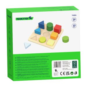 TOOKY TOY geomeetriliste kujunditega pusle on mänguasi, mis meeldib ja huvitab iga last. Geomeetriliste kujundite äratundmise ja sortimise võimalusega pusle on parim kingitus kõige pisematele. See treenib suurepäraselt taju ja mälu ning õpetab värve ära tundma. See on suurepärane harjutus ajule. Lapse ülesanne on torgata 9 erinevat värvi ja kujuga klotsi spetsiaalselt nikerdatud aukudesse: kolmnurk, ruut ja ring. Klotsid kukuvad välja lõigatud aukudega puidust ruudu sisse. See funktsionaalne mänguasi pakub teie väikesele meelelahutust paljudeks tundideks. Mänguasjade valikul lähtume üldjuhul ostuga seotud väärtustest. Kujusorteerija kaubamärgilt Tooky Toy – geomeetrilised figuurid ühendavad endas praktilisuse ning mõjutavad lapse arengut ja haridust. Omadused Lastele alates 2. eluaastast Komplekt koosneb 10 elemendist, sh lauad geomeetriliste kujundite paigutamiseks. Peenmotoorika arendamine. Komplekti kuulub: 3 kolmnurka, 3 ruutu, 3 ringi. juhatus. Mänguasi arendab: Mälu, Keskendumist, Visuaalset taju, Loogilist mõtlemist, Käe-silma koordinatsiooni, Peenmotoorikat.