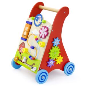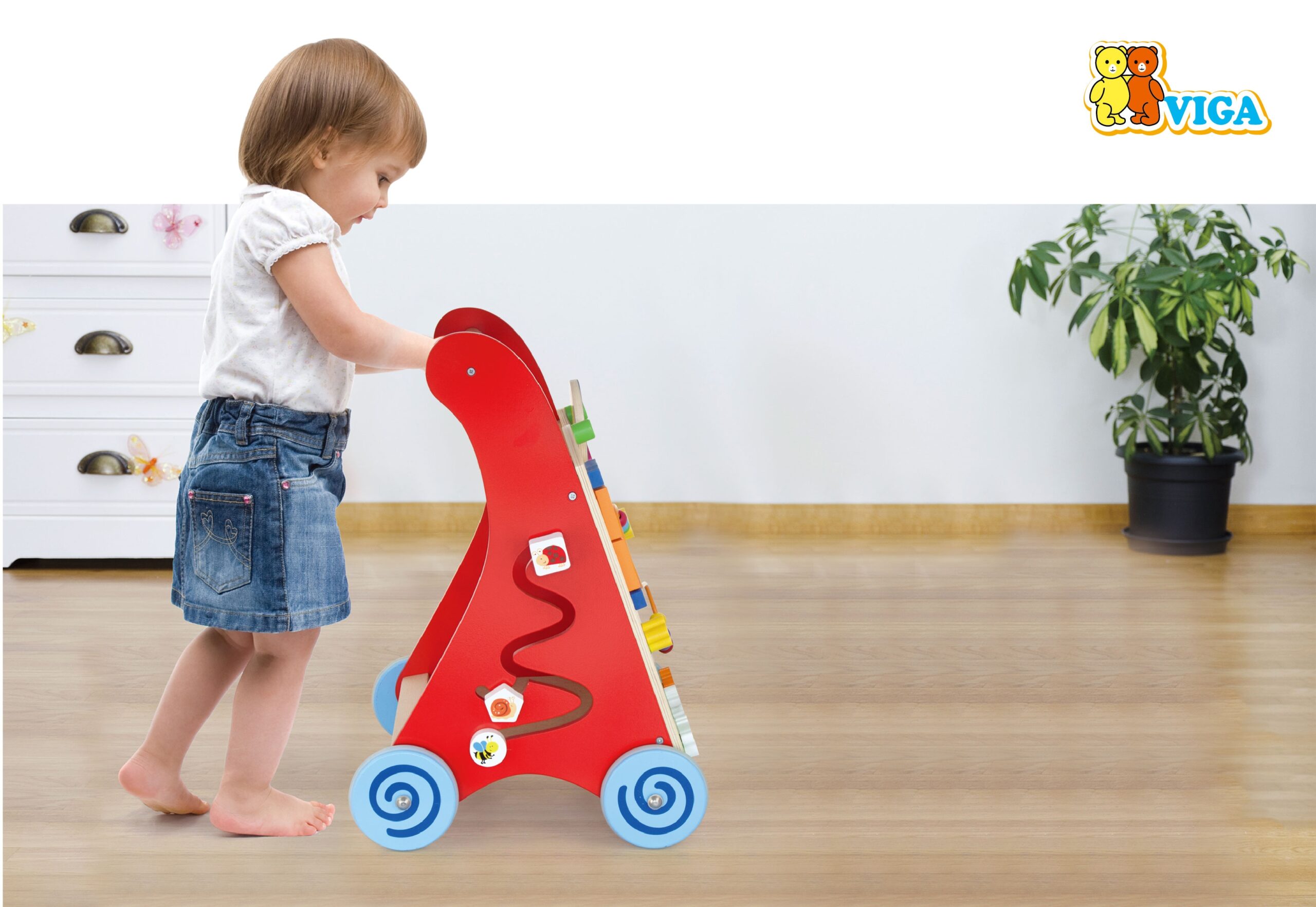 Lastele mõeldud hariv tõukur, mille on disaininud lugupeetud mänguasjade tootja alates 18 kuu vanustele lastele Viga Toys. Funktsionaalne mänguasi lastele, see toimib ka jalutaja ja hariva paneelina, tänu millele laps õpib vorme ja värve sobitama. Pöörlevad elemendid hammasrataste kujul, loomadega rajad paneelil ja selle külgedel pakuvad lapsele huvi ja muudavad lõbususe atraktiivsemaks. Ohutuse ja stabiilsuse tagavad libisemisvastase kummiga (ei kriimusta põrandaid) kaetud laiade vahedega rattad ja puidust käepide. Esipaneelil on: pöörlev element joonistatud päikese ja kuuga, pööratav tuuleveski, värviliste helmestega mootoriaas, kassipoja joonistusega pöörlev element, kolm talulooma (lehm, koer, hobune), keda saab mööda rada lauta juhtida. Lisaks on meie jalutaja külgedel kaks atraktsiooni: spinningu käikude komplekt, rada mesilase, lepatriinu ja teoga. Kogu asi on valmistatud lakitud puidust, värvitud lastekindlate värvidega erksates värvides, mis rahuldavad iga kasutaja ja pakuvad palju rõõmu. Viga Toys on kaubamärk, mis registreeriti 2003. aastal, kuid on juba esindatud enam kui 60 riigis üle maailma. Nende uuenduslikud ideed pälvisid muu hulgas tunnustust. Euroopas, USA-s, kauges Austraalias ja Jaapanis. Ettevõtte asutajad juhtisid tähelepanu uurimistulemustele, mis näitavad mängu ja õppimise seost laste arengu algusaastatel. Et aidata lapsevanematel ja õppeasutustel lapsi kasvatada ning päästa neid virtuaalmaailmast, mis võib oluliselt moonutada tegelikkust, pakub tootja uuenduslikku sortimenti, mis on valmistatud ökoloogiliste tootmisprotsesside käigus saadud looduslikest materjalidest. Puittoodete ohutus ja kvaliteet on Vigi jaoks prioriteet, tootja on jälginud, et mänguasjade värvimisel kasutatavad värvid vastaksid EN71 ja ASTM ohutusstandarditele. [img-33984-left-thickbox_default] [img-33985-left-thickbox_default]