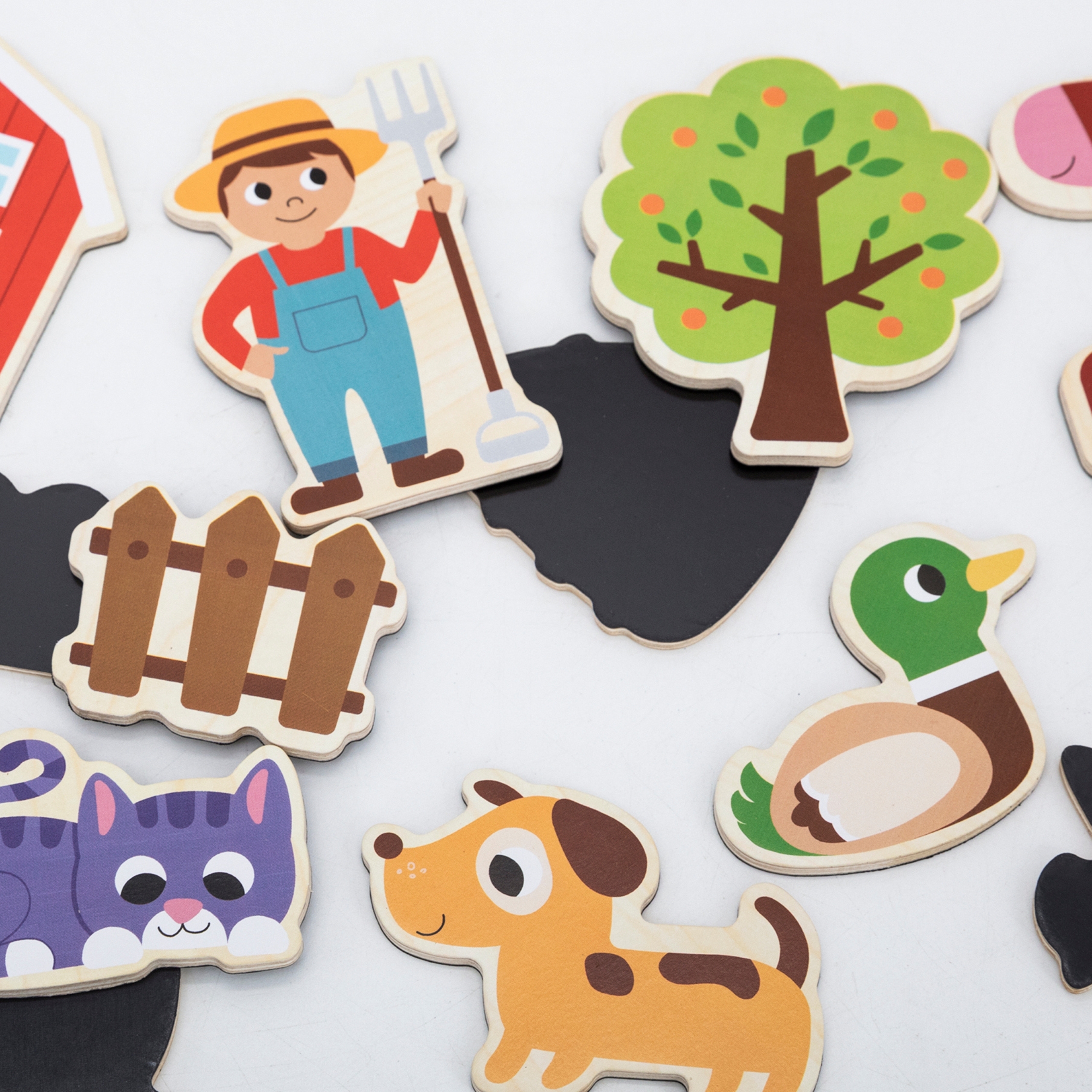 Saage tuttavaks armsate taluloomadega VIGA kaubamärgi puidust magnetite, magnetkujukeste näol! See 20 elemendist koosnev komplekt julgustab mängima mis tahes magnetpinnal – külmikus, laual või spetsiaalsel matil. Lapsed saavad luua stseene, rääkida oma lugusid ja õppida tundma põllumajandusloomade maailma. Värvilised ja vastupidavad osad on kerged ja väikestel kätel on neid lihtne hoida. Ideaalne komplekt kõige väiksemate loovuse, keele- ja käeliste oskuste arendamiseks. Omadused: – Põllumajandusloomi kujutavad puidust magnetfiguurid – Värvilised, väljendusrikkad mustrid, mis köidavad laste tähelepanu – Magnetiline tagakülg võimaldab kinnituda mis tahes metallpinnale – Toetab loovuse ja keeleoskuse arengut – Lihtne hoida värvilises karbis Mänguasja arendab: – Põllumajandusloomade äratundmist – Loovat jutuvestmist ja kujutlusvõimet – Käelisi oskusi ja huvitatust talus suhtlemis- ja keelearengus