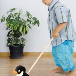 Pingviiniga pulgatõukur Vigalt on mõeldud lastele, kes alles õpivad esimesi samme tegema. Värviline tõukur julgustab beebi esimesi samme tegema ning on tänulik kaaslane jalutuskäikudel kodus, aias ja pargis. Tunnused: – puust tõukur pulgal on lihtne ja lihtne mänguasi, millega mängis lapsepõlves iga lapsevanem, – tõukur on klassikaline mänguasi, kuid selle olemasolu toob palju kasu, – mustvalge Pingviin liigutab “jalutuskäigu” ajal energiliselt oma käppasid, mis on kinnitatud ratastele, mis lisaks julgustab last koos ratastega matkama, takistavad ratastega matkamist – tõukerattaga. libiseb ja imab ebatasasusi. Padjakestega tõukur võimaldab kodus mängida ilma põrandaid kahjustamata, – mänguasi on pakitud esteetilisesse kasti, millel on aken, mille kaudu saab looma näha. Karbi sees on käepidemega pulk, mis sobib ideaalselt väikesele käele ja võimaldab seda kindlalt käepidemes hoida. Pulk ei ole mänguasjasse püsivalt kinnitatud, mis muudab selle ladustamise lihtsamaks – kogu asi on valmistatud pöögipuust ja värvitud mittetoksiliste värvidega erksates värvides, mis köidavad pilku ja julgustavad mängima, pakkudes samas palju nalja. Mänguasi: – toetab kehalise aktiivsuse arengut, – arendab motoorseid oskusi (kõndimine, käteliigutuste täpsus), – ergutab ruumis orienteerumistaju, – harjutab reflekse, – arendab loovust.