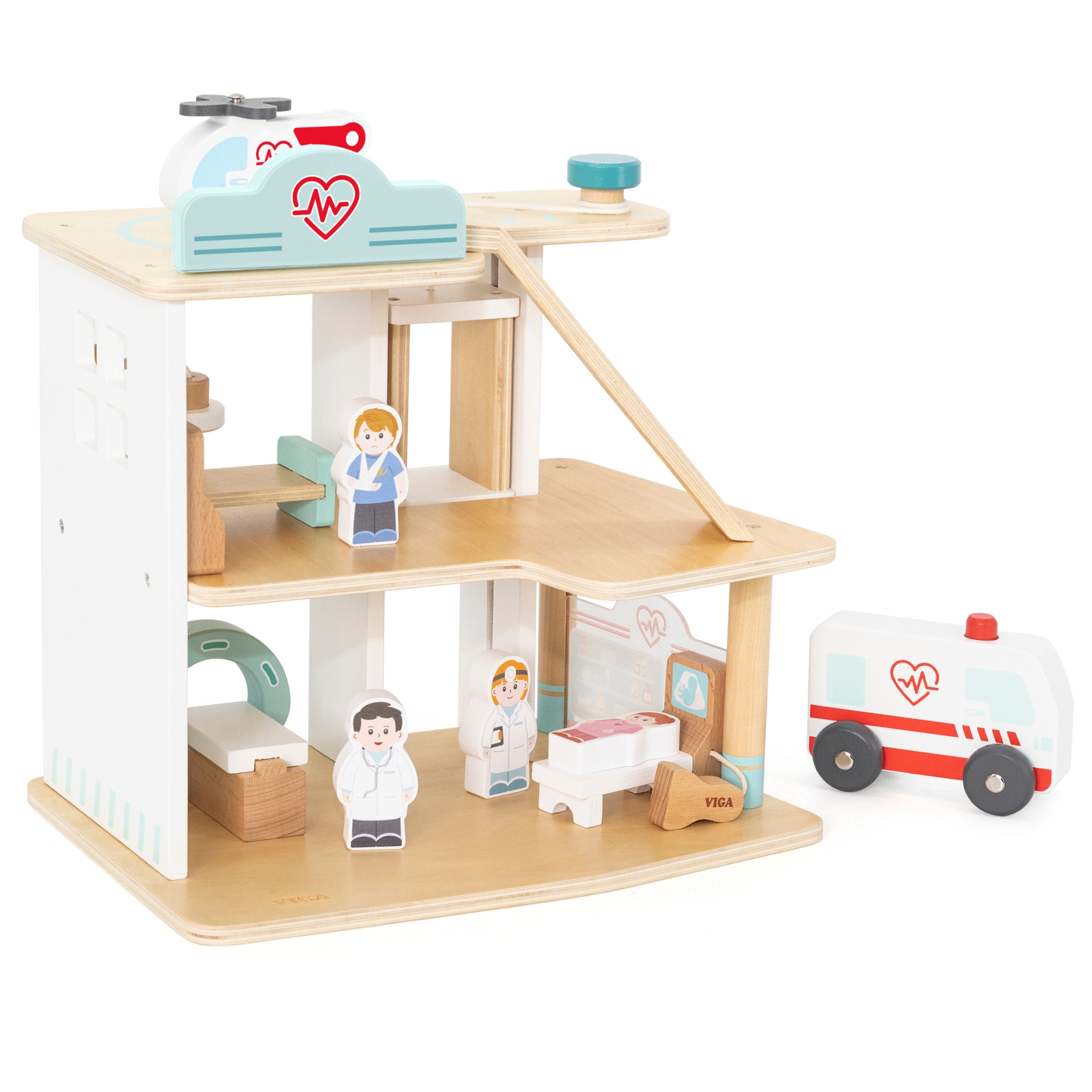 VIGA 3-korruseline haiglakomplekt on põnev mänguasi väikestele arstidele ja õdedele! See hästi varustatud struktuur pakub tundide kaupa loomingulist lõbu elude päästmisel ja patsientide eest hoolitsemisel. Tänu erinevatele elementidele saavad lapsed luua realistlikke meditsiinilisi stsenaariume, arendades empaatiat ja sotsiaalseid oskusi.✅ Omadused: ✔️ Lastele alates 3. eluaastast✔️ Valmistatud kvaliteetsest puidust✔️ Esimene korrus on täielikult varustatud kompuutertomograafia skanneri, ultrahelijaama ja ravimite hoiuruumiga✔️ Teisel korrusel on detailne operatsioonituba koos helikopteriruumiga✔️ ✅Komplekti kuulub: ◾ Puidust 3-korruseline haiglahoone ◾ Kiirabiauto ◾ Päästehelikopter ◾ Arsti, õe ja kahe patsiendi figuurid ◾ Meditsiinitehnika: tomograaf, ultraheli, pulsikell ◾ 2 haiglavoodit ◾ Loominguline lamp ◾ Loominguline kujutlusvõime ✅ ✅ Mänguvõime oskused ja meeskonnatöö✔️ Motoorsed oskused✔️ Empaatia ja hoolivus teiste vastu✔️ Silma-käe koordinatsioon✔️ Loogiline mõtlemine