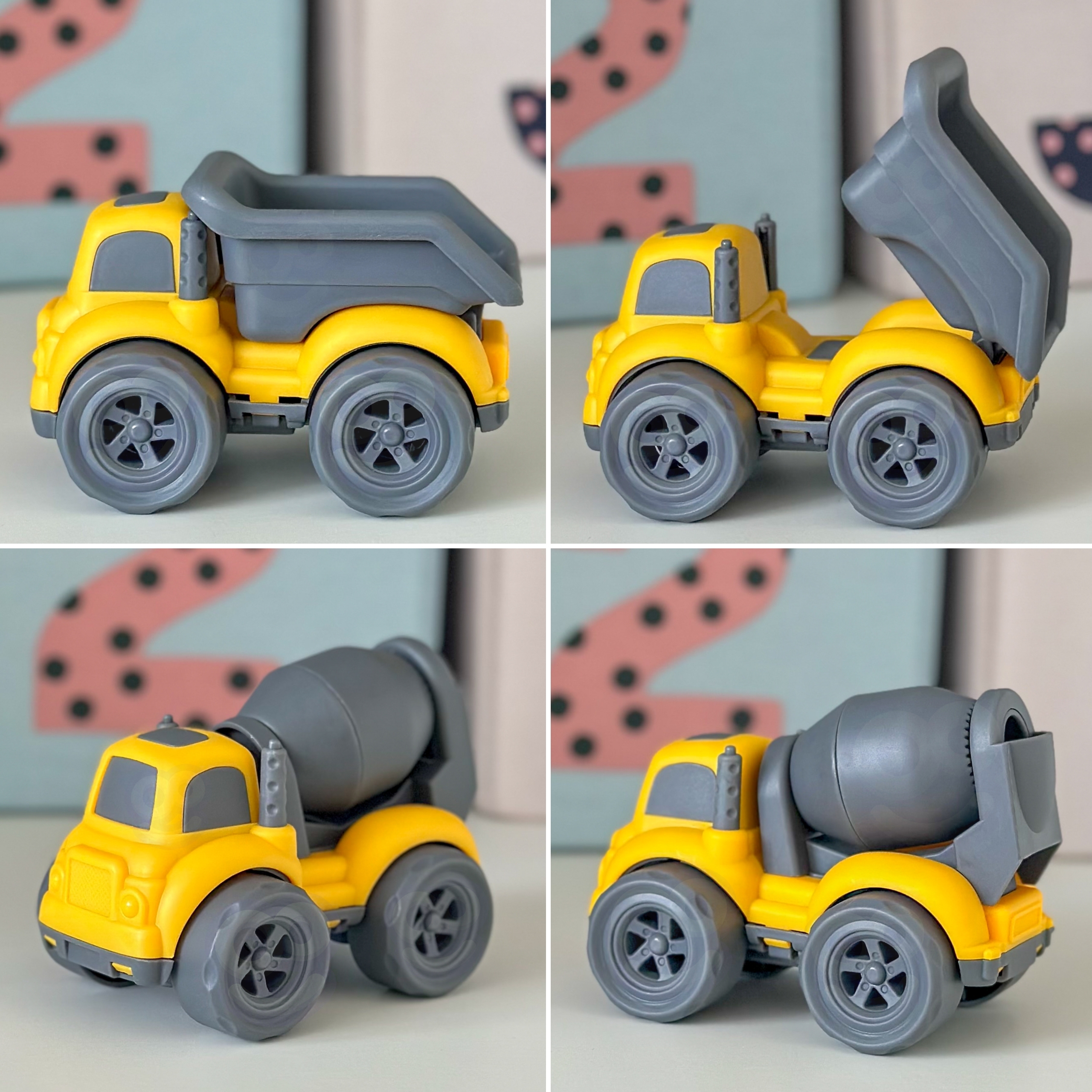 WOOPIE 3in1 komplekt ehitussõidukid prügiauto Betoonisegisti kallurauto