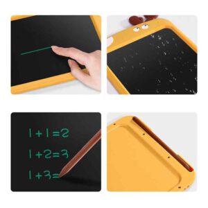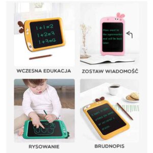 WOOPIE kerget ja vastupidavat 8,5″ LCD/skripti tahvelarvutit kasutatakse joonistamiseks või kirjutamise õppimiseks. Seda saab kasutada nii kodus kui ka reisil olles. Looge, joonistage, kirjutage ja loendake, seejärel kustutage ühe nupuga kirje ja alustage uuesti. Väga tundlik maatriks võimaldab lapsel kaasasoleva pliiatsiga kirjutada täpselt nagu pliiatsiga. Joonede paksus sõltub tahvelarvuti ekraani survest. Omadused: – kasutatakse joonistamiseks, kirjutamise õppimiseks või loendamiseks, – komplekt sisaldab tahvelarvutisse sisseehitatud käepärast pliiatsit, – pliiatsi surve jõule tundlik pind võimaldab joonistada erineva paksusega jooni, – käepärane nupp, mis on mõeldud ühe vajutusega koheseks kustutamiseks, – sellel on nupp, mis blokeerib joonise kustutamise funktsiooni, – kaasaskantav ja väikese kaaluga tahvelarvutist on lihtne kasutada – 8-kuuline tahvelarvutist on lihtne kasutada vanus, – LCD-ekraani suurus: 1x CR2025 aku – ei kuulu kaebustele lõbus – lase end Woopal veeta!