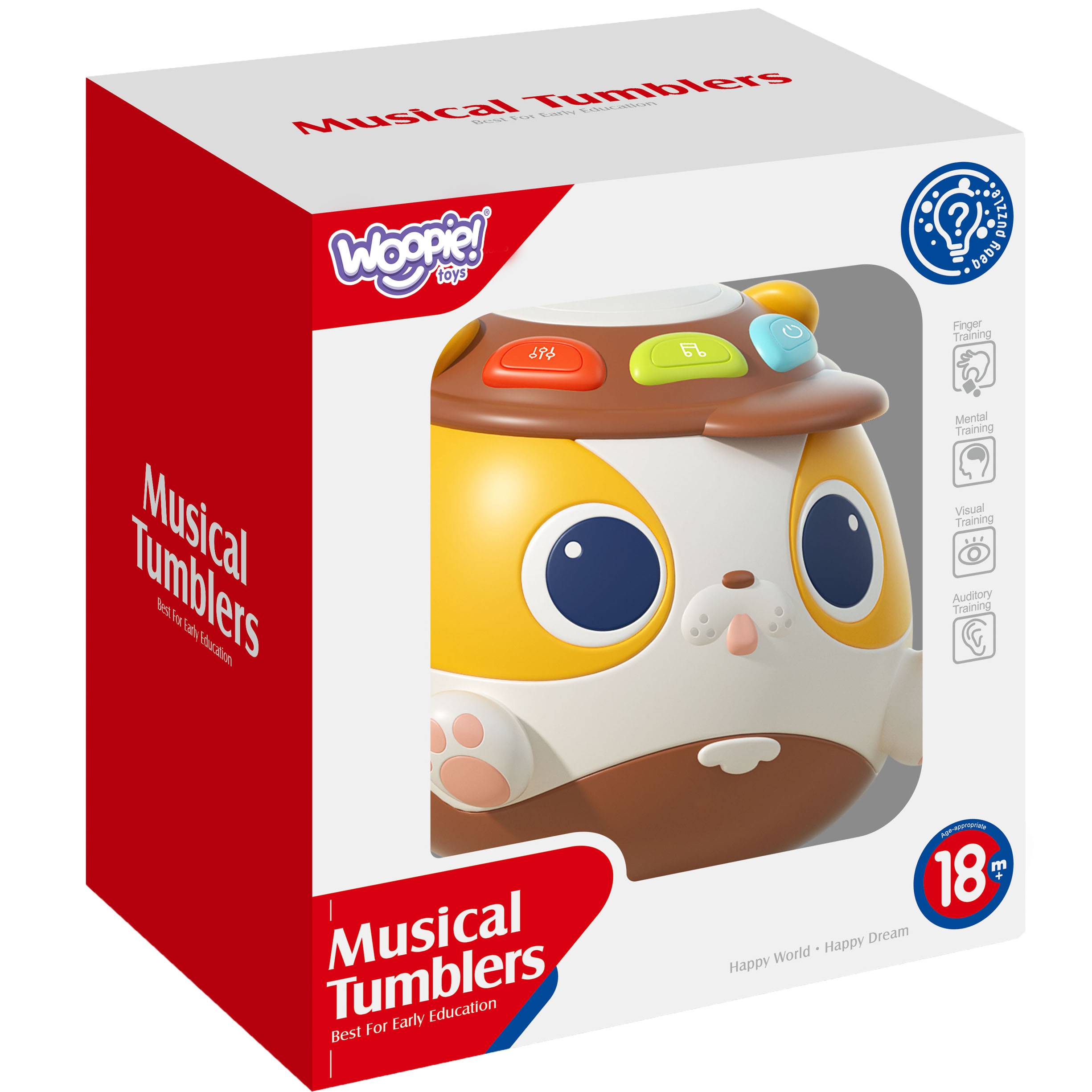 Muusikaline pallikoer on interaktiivne mänguasi kaubamärgilt WOOPIE. Mängupallil on nupud, millele vajutades vallanduvad kuulmismeelt ergutavad helid. Musikaalne koer sobib suurepäraselt lastele alates 18. elukuust, valmistatud turvalisest materjalist, lisaks on nägemise arengut stimuleeriva valgusefektiga. See on väga hea laste motoorsete oskuste arendamiseks. Toote omadused: – mänguasi alates 18. elukuust, – interaktiivne, vajuta nuppu ja kuulete heli- ja valgusefekte, – puuduvad teravad servad (kasutamine on ohutu), – stimuleerib meeli, Mänguasi arendab: – kuulmismeelt – nägemismeelt – peenmotoorikat – motoorset koordinatsiooni – põhjuse ja tagajärje mõistmist