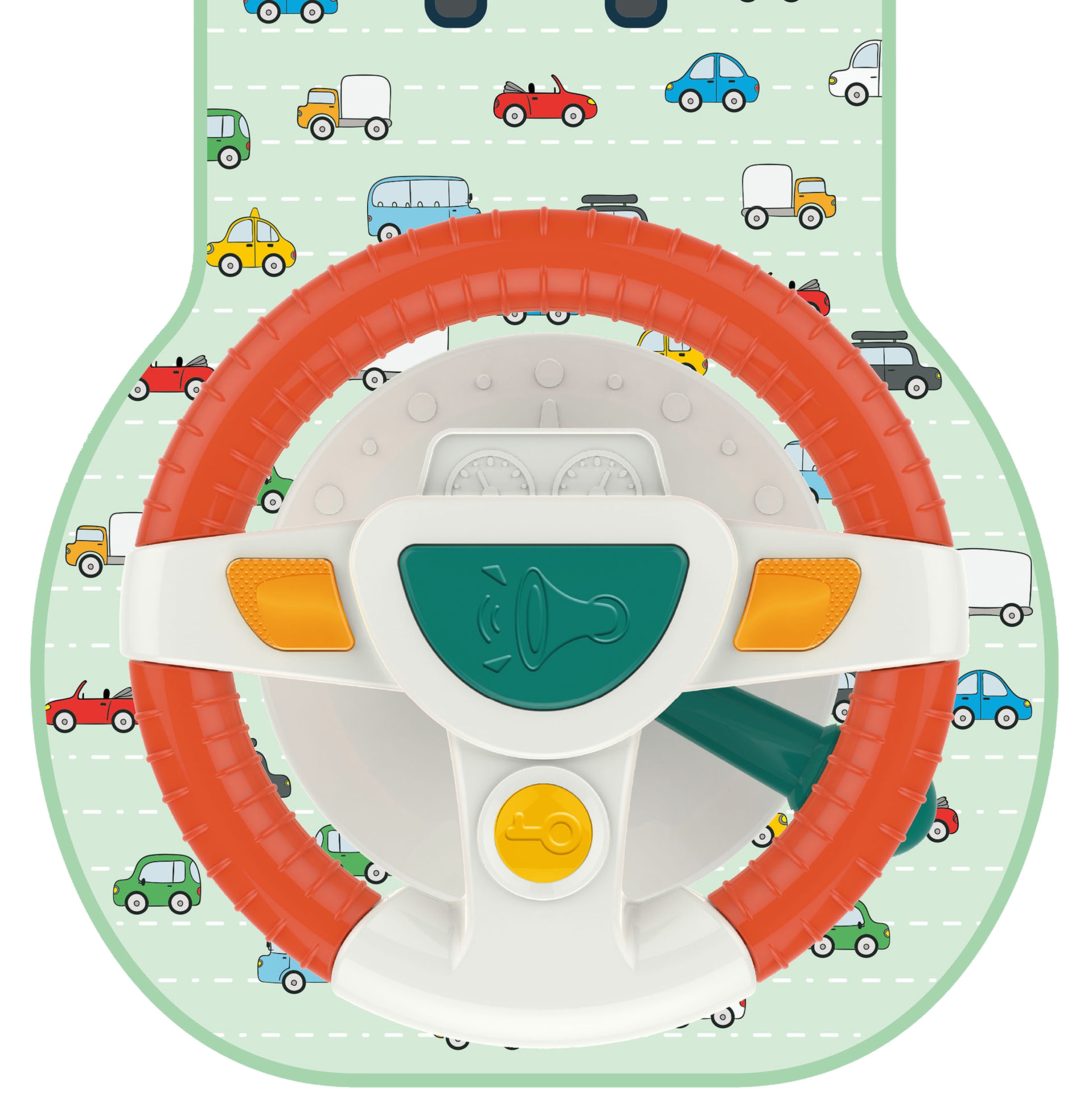 Brändi WOOPIE interaktiivne autorool pakub teie lapsele pikkadel reisidel lõputut lõbu. Laps saab autojuhi rollis matkida vanema käitumist. Laps saab kasutada helisignaali, suunatulesid, võtit mootori käivitamiseks ja plastikpeeglisse vaadata. Kõik roolielemendid teevad helisid ja süttivad, lisades lõbustusele võlu. Lapsed armastavad täiskasvanuid jäljendada ning see mänguasi võimaldab neil seda ohutult ja kontrollitult teha. Kõik mänguasja komponendid on kindlalt kinnitatud, puuduvad teravad servad ning rooli on lihtne kinnitada esiistme peatoe külge. Toote omadused: – mänguasi alates 18. elukuust – heli- ja valgusefektid – sarv, suunatuled, mootori käivitus – 4 nupu ja turvalise peegliga rool – lihtne paigaldada esiistme peatoele – reguleeritavad konksud – valmistatud ohututest materjalidest – vajalikud patareid: 3x “AA” Mänguasi arendab: – lapse loovust – koordinatsioonivõimet – silma-kujutlusvõimet – põhjus-käe-mõju mõistmist