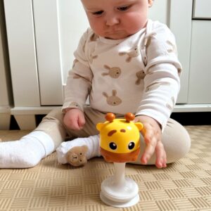 WOOPIE kaubamärgi Orange Tigger 0m+ kõristi on ideaalne mänguasi kõige pisematele, mis on loodud lapse turvalisust ja arengut silmas pidades. Mänguasjal on pehmed ümarad servad ning see on valmistatud imikute nahale sõbralikest materjalidest. Kõristik on disainitud nii, et lapse väikestest kätest oleks seda lihtne haarata. Kontrastsed valged ja mustad värvid ergutavad beebide nägemist ning õrn kõrist tõmbab nende tähelepanu ja arendab kuulmist. Mänguasi on kerge ja kompaktne, sobib ideaalselt nii kodus kui ka reisil mängimiseks. Omadused: – mänguasi beebidele, – 2 in 1 – hambuline ja kõrist, – valmistatud ohututest materjalidest, – oranžikaspruunid värvid, luues tiigri välimuse, – kõristi saab tänu iminapale kinnitada tasasele pinnale. Mänguasi arendab: – peenmotoorikat haarates ja hoides – käe-silma koordinatsiooni liikuvaid elemente jälgides – nägemistaju läbi kontrastsete värvide – kujutlusvõimet mängu kaudu.