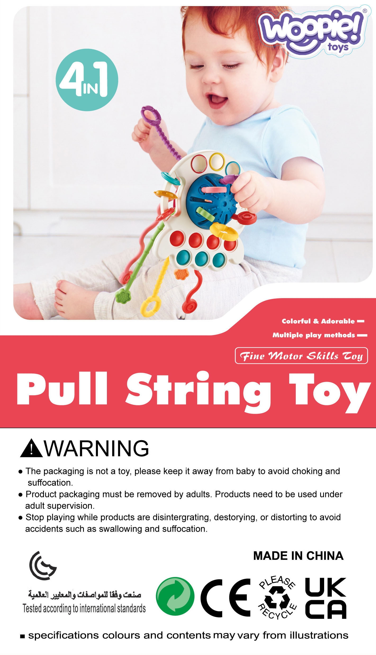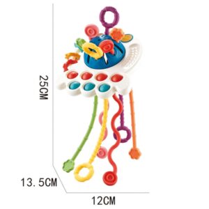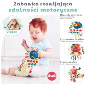 WOOPIE kaubamärgi Montessori sensoorsed mänguhambad “Tug” ei ole mitte ainult suurepärane meelelahutus, vaid ka uuenduslik viis beebi arengu toetamiseks. See julgustab meelte kaudu avastamist, keskendub koordinatsiooni ja motoorsete oskuste arendamisele ning leevendab hammaste tulekuga kaasnevat ebamugavust. Komplekti kuuluvad värvilised, turvalised ja kergesti haaratavad erinevate tekstuuridega nöörid, mis stimuleerivad tegevust ja uurimist, pakkudes samas leevendust hammaste tuleku ajal. See sensoorne hambahari on ideaalne kingitus beebile, mis ühendab meelelahutuse õppimisega. Tänu sellele saate tagada oma lapse tervisliku arengu ja tundide kaupa kaasahaaravat lõbu. Pakkuge oma pisikesele mugavust ja arengut! Peamised eelised: – Motoorse arendamine: Erineva tekstuuri ja kujuga nöörid kutsuvad väikseid käsi haarama, tõmbama ja uurima. – Meelte stimuleerimine: paljud värvid, tekstuurid ja helid mõjutavad nägemis-, kuulmis- ja puudutusmeeli. – Montessori meetod: Montessori filosoofiast inspireeritud mänguasi toetab iseseisvust ja sensoorset õppimist. – Hügieeniline ja ohutu: lihtne puhastada tagab hügieeni ja turvalised materjalid pakuvad vanematele meelerahu. – Rahustab hammaste tekkimist: pehmed servad ja mitmesugused tekstuurid sobivad ideaalselt beebide õrnadele igemetele. – Hariduslik väärtus: Edendab käe-silma koordinatsiooni ja sensoorset arengut. – Hoiab ära sõrmede imemise: pakub tervet alternatiivi sõrmedele ja muudele esemetele. Omadused: – Vanus: Ohutu imikutele – Hariduslik väärtus: Arendab motoorseid oskusi ja meeli, inspireerib iseseisvat mängu – Sensoorne mitmekesisus: Nöörid, nööbid ja näritavad kujundid, mis stimuleerivad erinevaid meeli – Materjal: Pehme plastiku, kummi ja silikoon kombinatsioon, mis sobib ideaalselt beebide igemetele – Ohutus: ümarad servad, materjal: ei sisalda väikseid osi, ohutu – lastele, kummist, plastikust, kummist. Mõõdud: 25 cm x 12 cm – Värv: Mitmevärviline – Nööride pikkus: 6 tk u. 20-25 cm