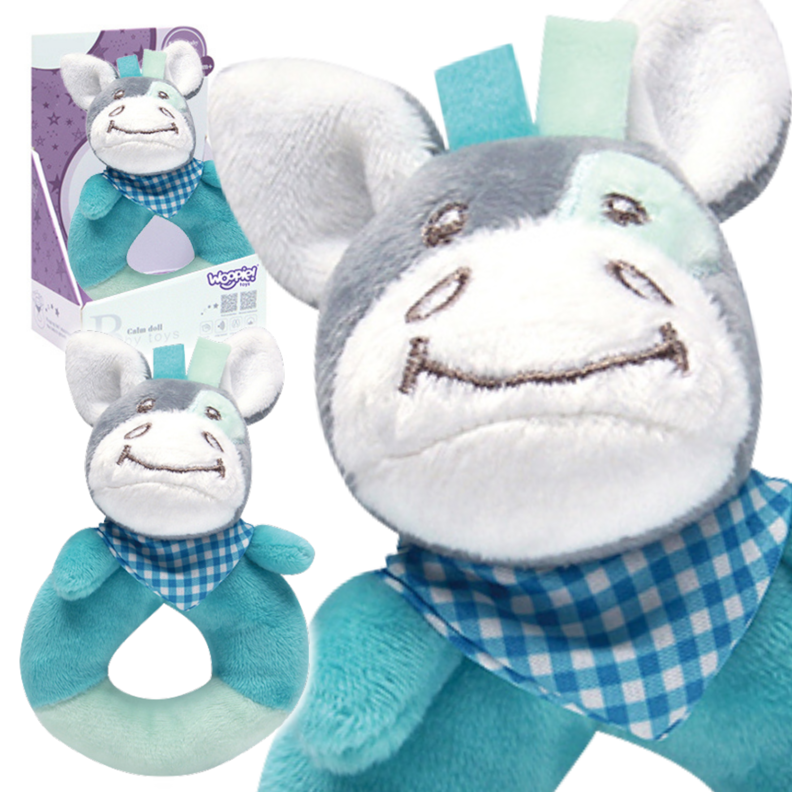 Palus Donkey kaubamärgilt Woopie lõbustab teie last. Mänguasi sobib beebidele, on beebi kätele ideaalse struktuuriga ja on täidetud pehme vatiga. Lisaks saab vanem käepidemest kinni hoida ja lapsega mängida. Mänguasi teeb raputamisel iseloomulikku ragisevat häält. – see hoiab lapsel meelelahutust ja keskendumist. Pehme puudutusega topis saab teie lapse sõbraks juba varakult ja on temaga kaasas ka uneajal. Lisaks saab mänguasja ohutult ja lihtsalt puhastada. Juba väikesest peale arendab eesel käeoskusi (peenmotoorikat) ja lapse meeli – kompimis-, kuulmis- ja nägemisvõimet! Omadused: beebidele sünnist saati mõeldud mänguasi, mis on valmistatud õrnast materjalist ja täidetud vatiga, helifunktsioonid – raputamisel koliseb, lihtne pesta. Mänguasi arendab: kompimismeelt, kuulmist ja nägemist, peenmotoorikat – käte liikumist, keskendumist.
