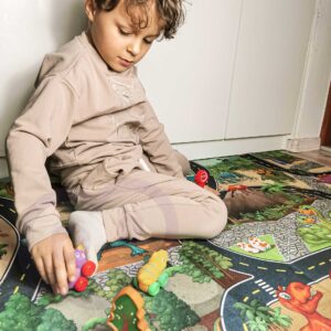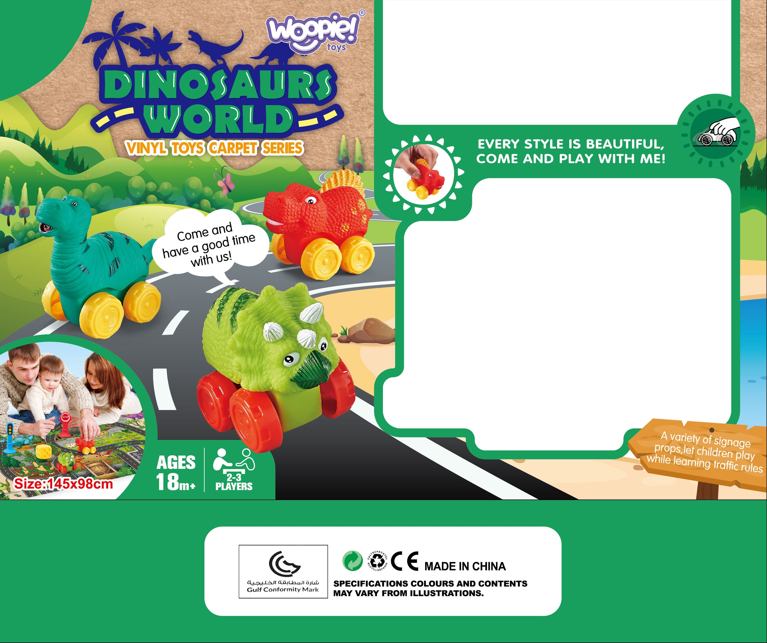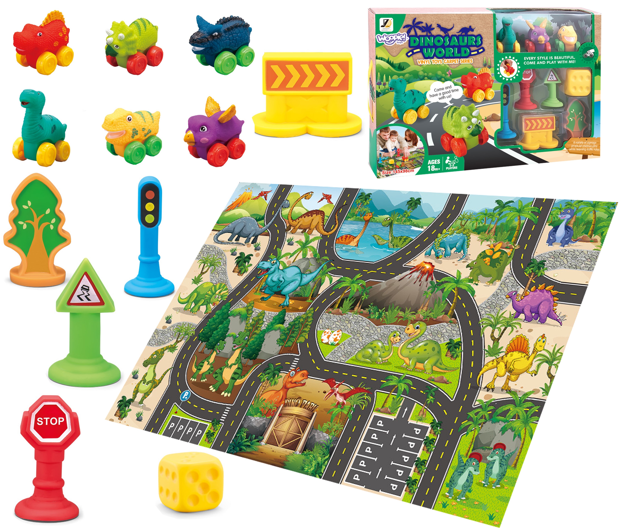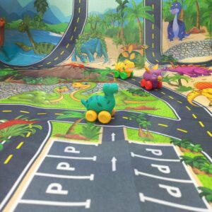 Brändi WOOPIE dinosaurusteemaline teematt on teie lapsele suurepärane mänguasi. Laps saab istuda matil ja juhtida dinosauruste autosid. Tänu lisaseadmetele, nagu liiklusmärgid, saab teie väikelaps õppida liiklusreegleid. Lisaks teedele ja parklatele on matil ka palju dinosauruseid, mis muudavad teie lapse mängu mitmekesisemaks. Elemendid nagu autod, kuubikud ja liiklusmärgid on pehmed ja neid saab pigistada – need on lastele ohutud! Matt arendab teie lapse käelisi oskusi, kujutlusvõimet ja loovust. Tunnused: – mänguasi alates 18. elukuust, – õrn ja pehme matt, – autod, kuubikud ja liiklusmärgid on pehmed ja pigistatavad, – laps saab õppida liiklusreegleid, – dinosauruse motiiv. Komplekti kuulub: – tänavamustriga matt, – 6 dinosaurusautot, – 4 teeviita, – puu, – kuubik.