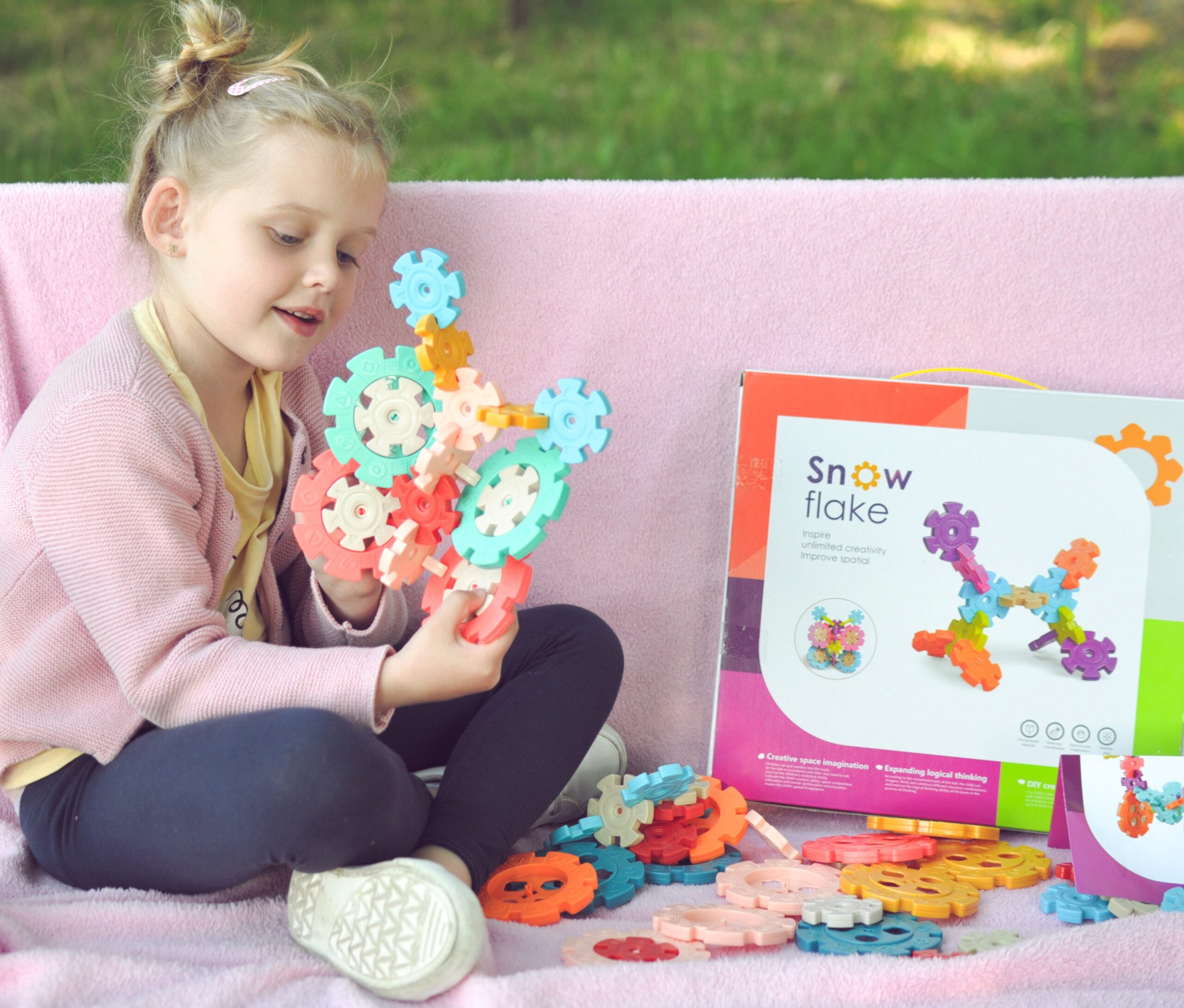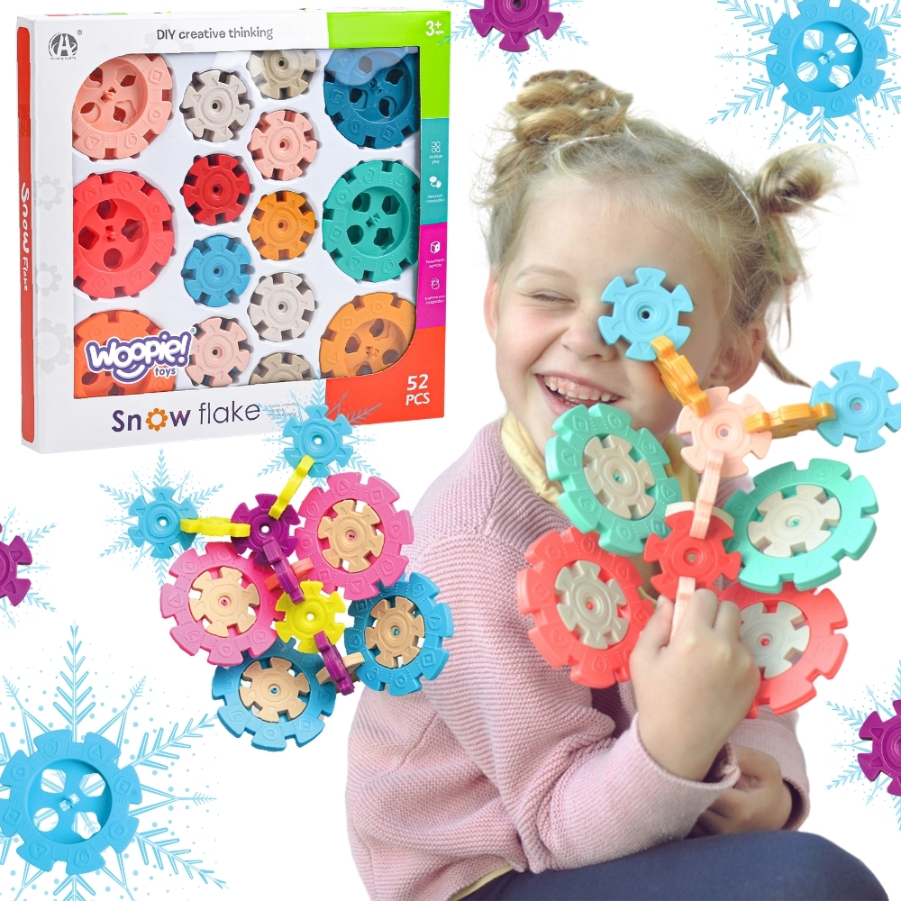 Brändi WOOPIE vahvlite ehitusplokid köidavad teie lapse tähelepanu ja lummavad. Värvilised elemendid näevad välja nagu lumehelbed. Plokid ühenduvad omavahel väga lihtsalt ning tänu nende ülesehitusele ja ühendamisviisile saab neist luua huvitavaid kolmemõõtmelisi struktuure. Lumehelvestes kasutatavad augud võimaldavad neid ühendada diagonaalselt, mitte ainult risti. Komplektis on 52 elementi: sealhulgas 18 suurt ja 34 väikest klotsi. Struktuuri ise ehitamine arendab teie lapse loogilist mõtlemist, kujutlusvõimet, loovust ja aitab teil keskenduda loomisel. Klotse järjestades õpib laps kujundeid ja värve ning harjutab nn käelisi oskusi. peenmotoorikat. Omadused: – mänguasi vanuses 3 aastat, – komplekt sisaldab 52 elementi, sealhulgas 18 suurt ja 34 väikest klotsi, – väikestel helvestel on 6 ja suurtel 8 auku ühendamiseks, – klotside sees on kuulid, mis teevad põrisevat häält, – võimalus luua kahevärvilisi elemente kombineerides väikeseid ja suuri lumehelbeid, – väikeseid ja suuri lumehelbeid saab hõlpsasti ühendada: kolmap 5 cm / suur dia. 9 cm, Mänguasi arendab: – loogilist mõtlemist, – kujutlusvõimet, – loovust, – käelisi oskusi.