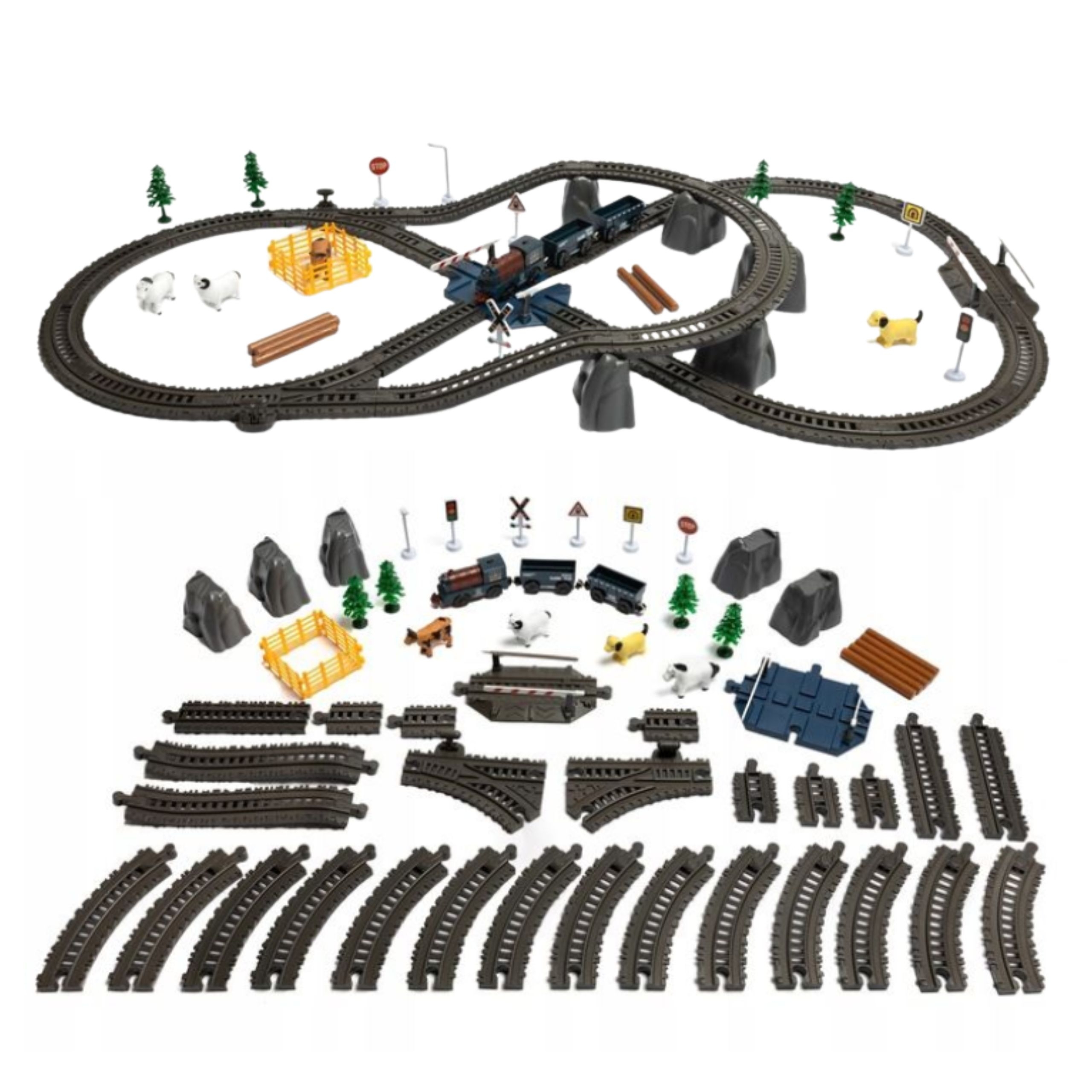 Laske rongide maailmas oma kodus ellu ärkama tänu võimsale WOOPIE XXL elektrirongile! See on komplekt, mis pakub unustamatuid emotsioone nii väikestele kui ka suurtele rongisõpradele. Akutoitel töötav disain tähendab täielikku mänguvabadust ilma sassis kaabliteta ning radade pikkus võimaldab luua keerulisi silmuseid, lüliteid ja marsruute. Komplekti kuuluvad lülitid, roomikud, loomad ja kaubavagunid, mis pakub mitmemõõtmelist lõbu ja ergutab kujutlusvõimet. Valgusefektidega vedur muudab rongisõidu veelgi realistlikumaks ja kaasahaaravamaks. See on ideaalne mänguasi perehetkedeks: see arendab loovust, koordinatsiooni ja käelisi oskusi juba varakult. Omadused: – Mänguasi, mis on mõeldud lastele alates umbes 3. eluaastast – Toide: patareid (ei pea pistikupessa ühendama) – Lai rööbastee: raja pikkus võimaldab läbida suuri ja keerulisi marsruute – Ehituselemendid: pöörded, aasad, pöörangud, tunnelid, tõkkepuuga ülekäigurajad – Vedur: liigub iseseisvalt, sellel on valgusti esiküljel transpordiobjektide konstruktsiooniks ja heliefektid valmistatud kvaliteetsest plastikust. Komplekti kuulub: – Valgusefektiga elektrivedur – Vedur liigub edasi-tagasi – 2 kaubavagunit – Kujukesed) loomade laadimiseks vagunitesse – Rööpad: sirged, kõverad elemendid, aasad, pöörded/marsruudid – Raudteeülesõit tõkkepuude ja liiklusmärkidega – Täiendavad maastikudetailid: puud, märgid – Loomingulisust ja kujutlusvõimet – Mänguasi arendab motoorseid oskusi ja kujutlusvõimet -: Kannatlikkus ja planeerimine – sotsiaalne suhtlus
