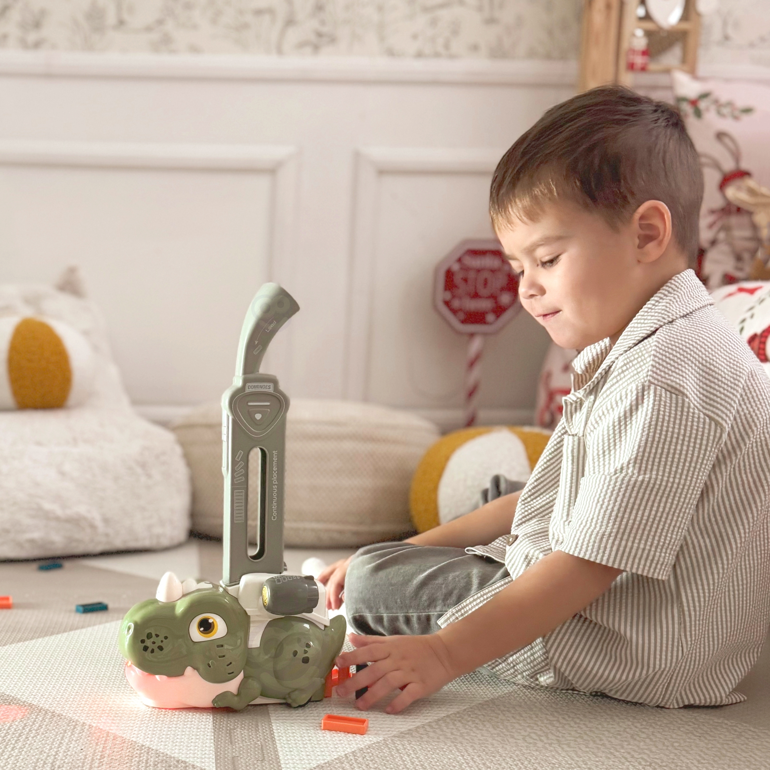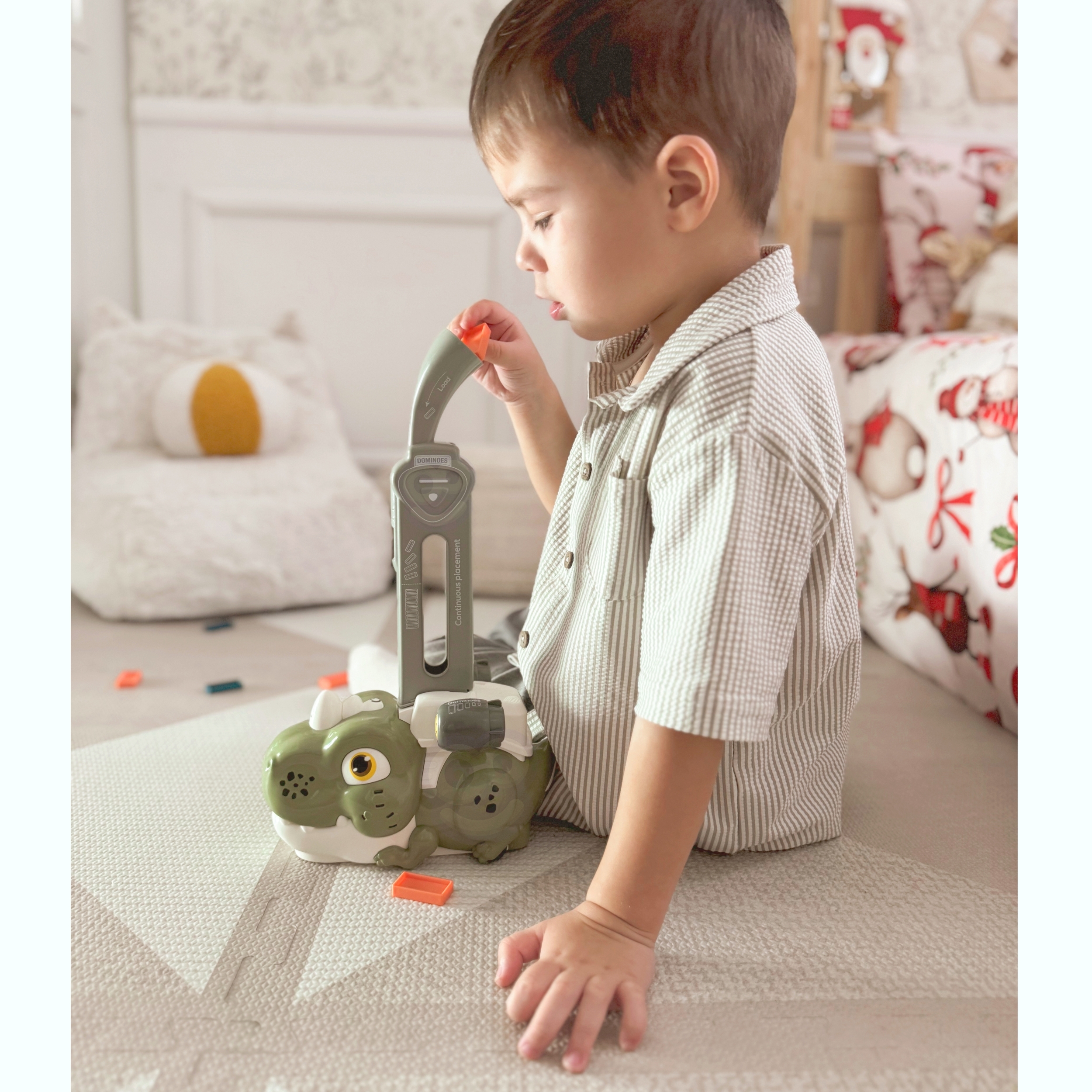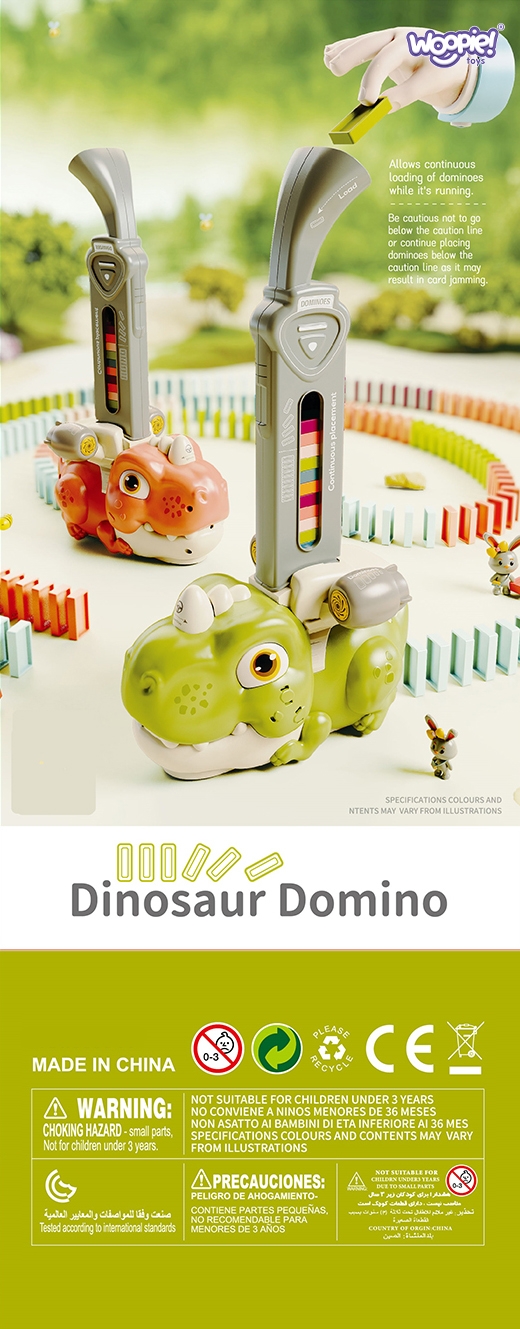Värviline Dinosaur Domino kaubamärgilt WOOPIE on mäng, mis ühendab mängurongid ja doomino, luues lõbusa ja originaalse mänguviisi. Heli ja valgus muudavad mängu lõbusamaks ja atraktiivsemaks ning tekitavad lastes mänguhuvi. Mängu alustamiseks täitke lihtsalt rong telliskividosaatoriga, alustage mängimist ja nautige protsessi. Lisaks on rongiga kaasas iseloomulikud helid ja valgustus, mis lisab mängule veelgi dünaamikat. Omadused: – Mänguasi vanusele 3 ja vanematele – Interaktiivne mänguasi – helid ja tuled – “telliskivi radade” automaatne paigutus – 2 AA patareid Komplekti kuulub: – Akuga rong – 1 siini klotside jaoks – 60 doominoklotsi (oranž, sinine, roheline) PAKKUMINE SISALDAB 3 TK KOMPLEKT.