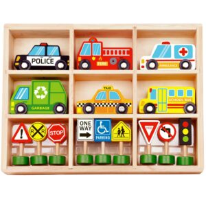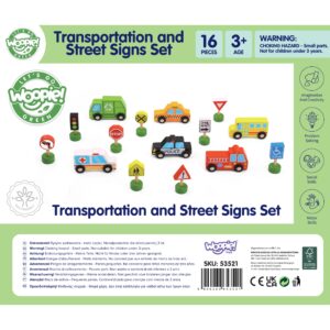WOOPIE GREEN Puidust sõidukite ja liiklusmärkide komplekt 15 tk.