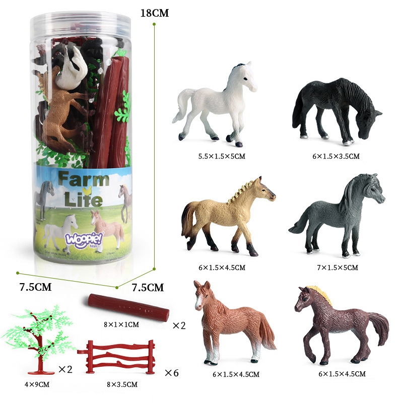 WOOPIE kujukeste komplekt on ideaalne komplekt igale loomafännile. Komplekti kuulub 6 hobust ja 2 puud, 6 aeda ja 2 puittala. Realistliku välimusega kujukesed laiendavad veidi kollektsionääri kollektsiooni, täidavad harivat funktsiooni ja pakuvad mõnusat lõbu, tänu millele avardab väikelapse kujutlusvõimet ja loovust. Omadused: – mänguasi vanuses 3 ja vanematele – 16-osaline komplekt. – hobukujukesed – kindel töötlus – täpne reprodutseerimine