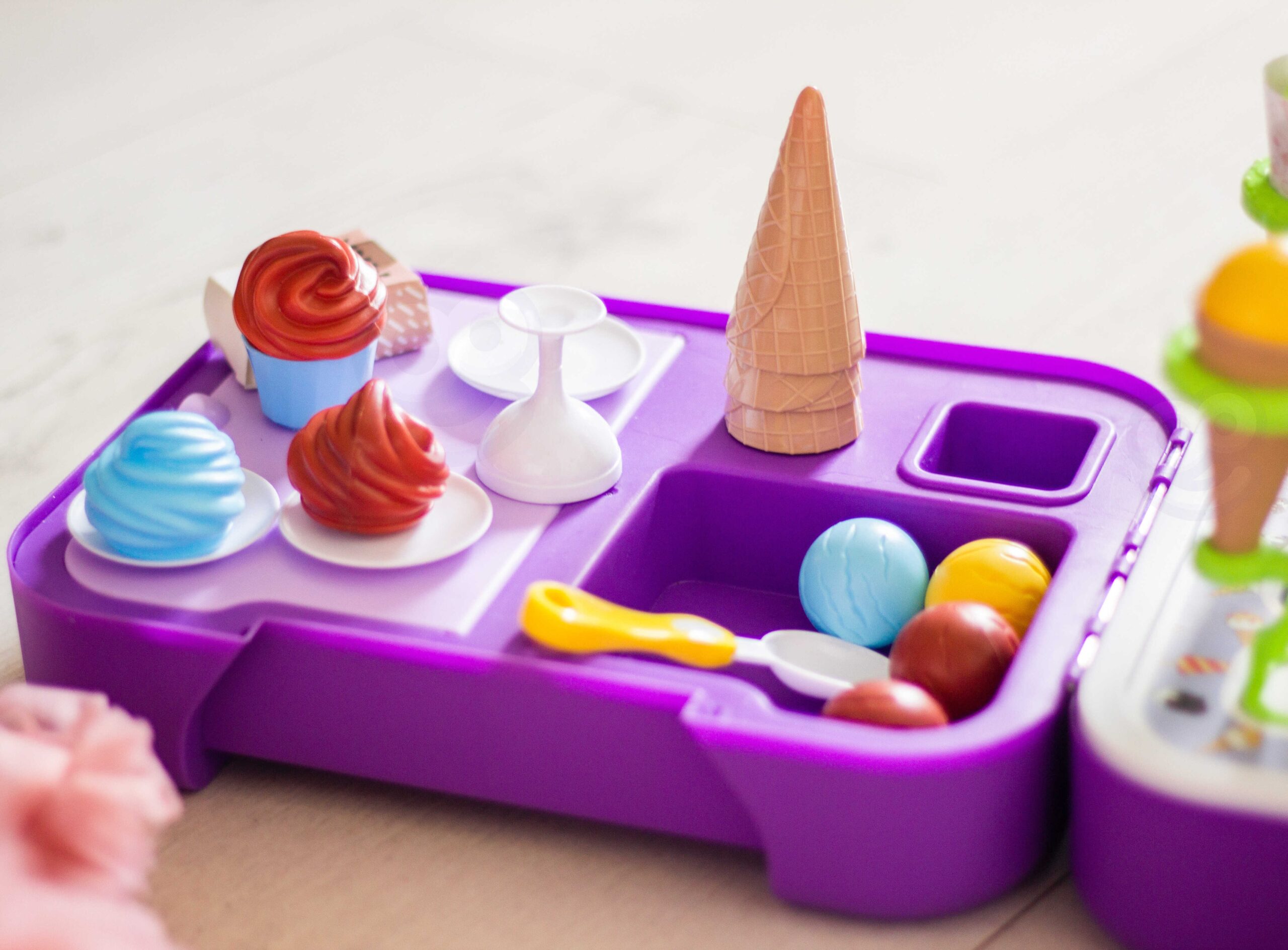 Jäätisekott loodi kõige nõudlikumate laste vajaduste rahuldamiseks. Lastepood kujundati jäätise müüki silmas pidades. Teile ja teie lastele meeldib disaini originaalsus ja see, kuidas see kujutlusvõimet ergutab. Laste jäätisepood mitte ainult ei julgusta mängima, vaid on ka lastele hariv mänguasi. Komplekt sobib suurepäraselt sünnipäevadele, basseinipidudele, mänguväljakutele, klassiruumidesse või lasteaedadesse. See suurepärane toode on suurepärane kingitus teie lastele! Kõik pakitud stiilsesse kohvrisse. Omadused: – alates 3 eluaastast, – komplekt sisaldab 62 elementi, – toode on lastele ohutu, – vastupidavast materjalist elemendid, – ideaalne mänguasi igaks elujuhtumiks, – voldib korralikuks kohvriks, – ideaalne pakend kingituseks, – toimib poe, jäätisepoe ja köögina.