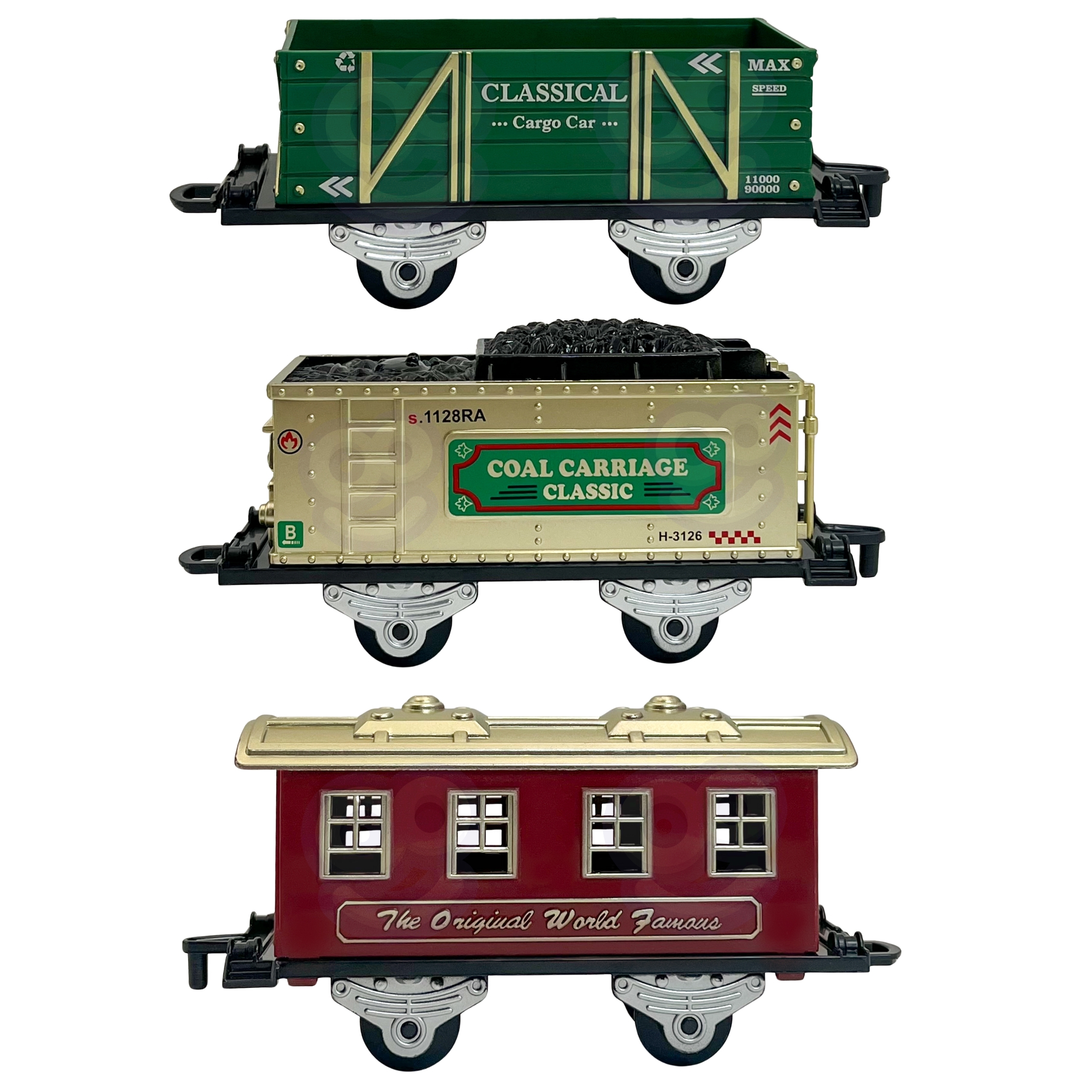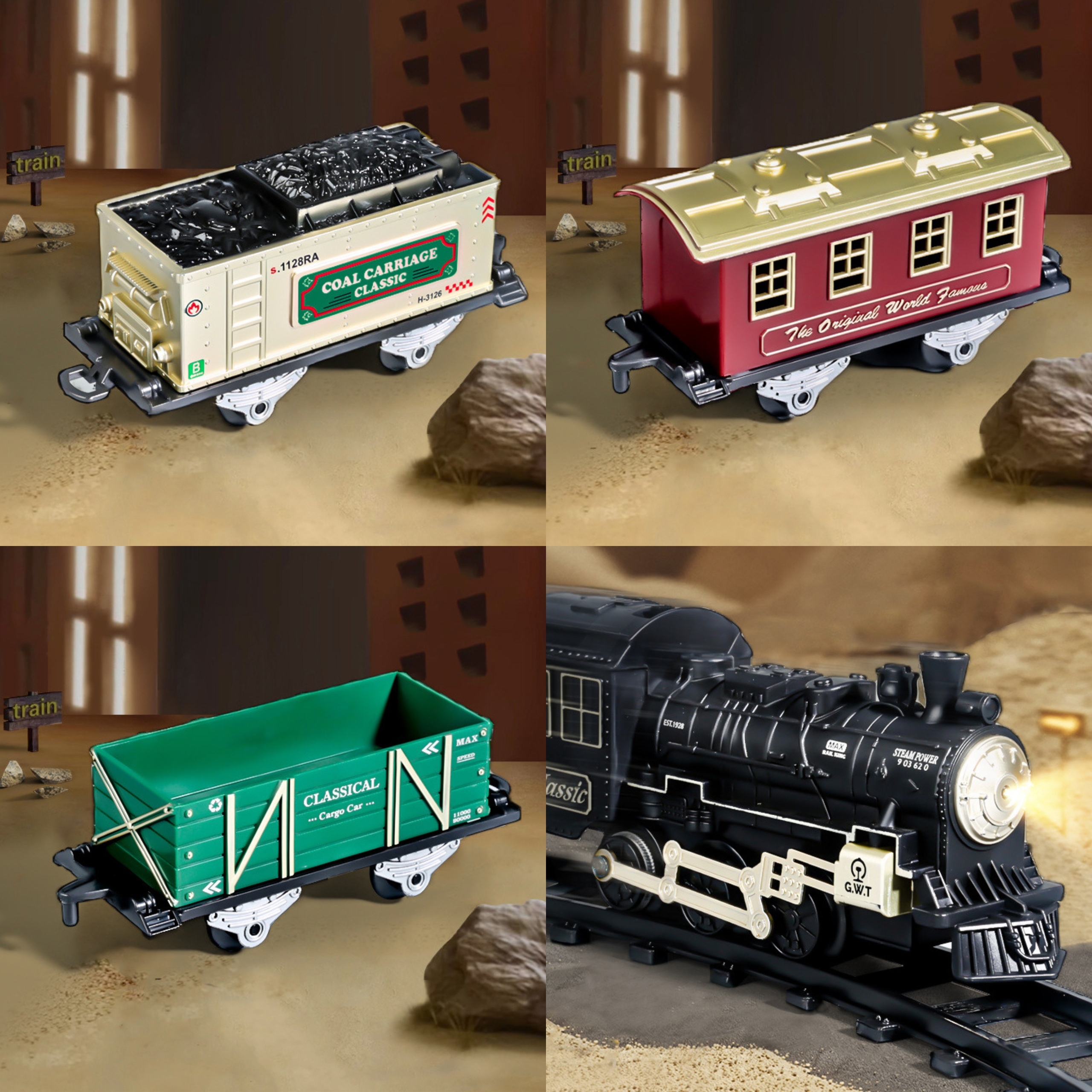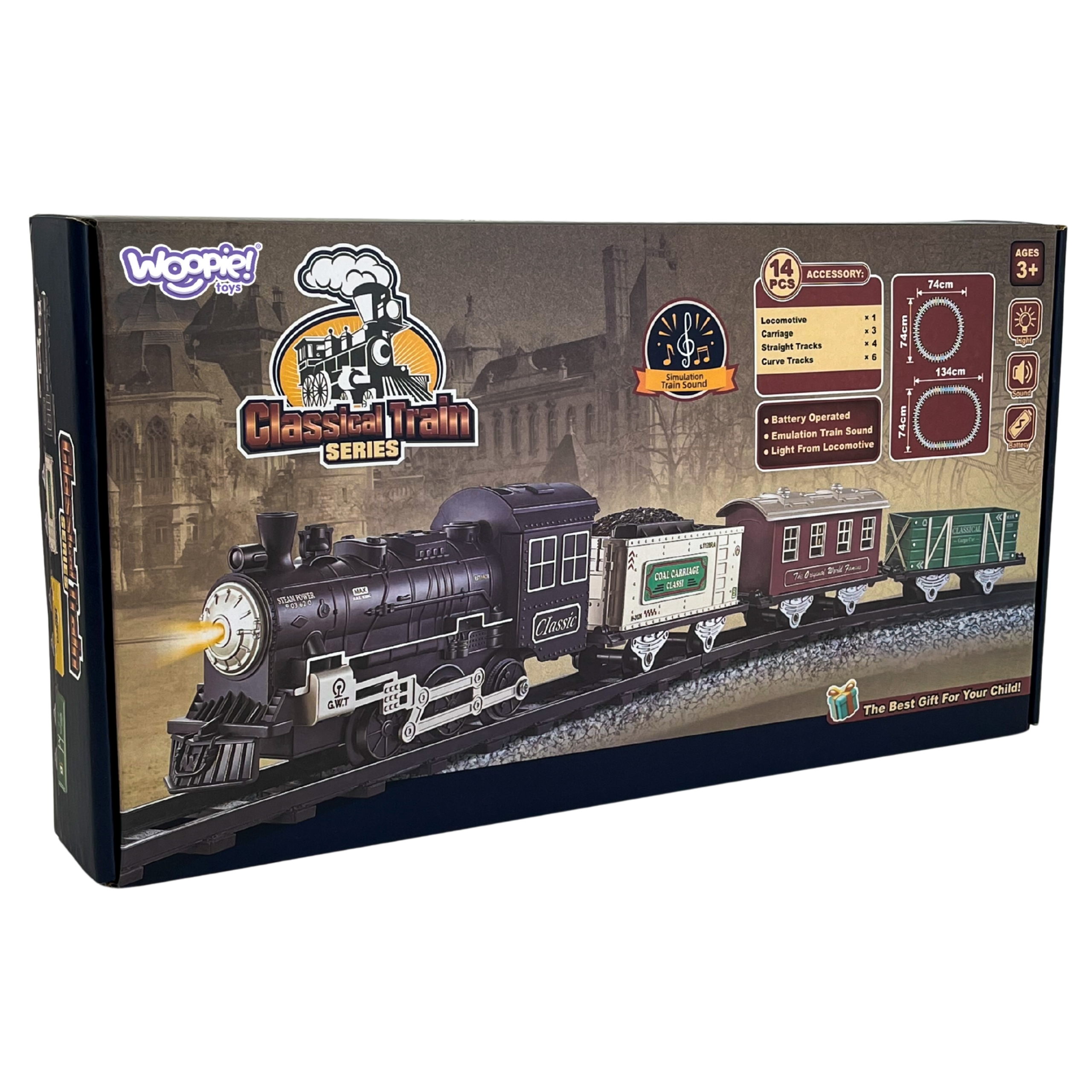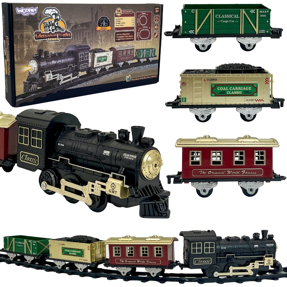 Viige end unustamatute reiside maailma klassikalise Woopie kaubamärgi aururongiga! See imeline komplekt pole mitte ainult aururongi truu koopia, vaid ka lugematute tundide loomingulise lõbu allikas. Klassikalise auruveduri tõetruu reprodutseerimine ning realistlikud valgus- ja heliefektid muudavad iga reisi unustamatuks seikluseks ning lihtsalt kokkupandavad rajad võimaldavad luua oma põnevaid marsruute. Ideaalne väikestele rongijuhtidele ja raudteehuvilistele, kes soovivad tunda rongireisi võlu! Omadused: – Lastele alates 3. eluaastast – Komplekt imiteerib klassikalist aururongi – Vedur on varustatud helendava esitulega, mis lisab sõidu ajal realistlikkust – Rong teeb realistlikke hääli, imiteerides tõelise auruveduri hääli, mis suurendab mängukogemust – Rööbastee elemente on lihtne ühendada, mis võimaldab kiiresti luua erinevaid marsruudi konfiguratsioone ja vagunite komplekti vagun, kastivagun), mis mitmekesistab lõbusust transpordil – Komplekt võimaldab ehitada ümmarguse rööbastee läbimõõduga 74 cm või ovaalse raja mõõtudega 134 x 74 (cm) – Vajalikud patareid: 2 x AA (ei kuulu komplekti) Komplekti kuulub: – 1 x Auruvedur valgus- ja heliefektidega – 1 x Söevagun x1 vagun -0 (4 sirget ja 6 ümarat) rajaelementi marsruudi ovaalseks või ümaraks ehitamiseks Mänguasi arendab: – loovust – kujutlusvõimet – käelisi oskusi – loogilist mõtlemist