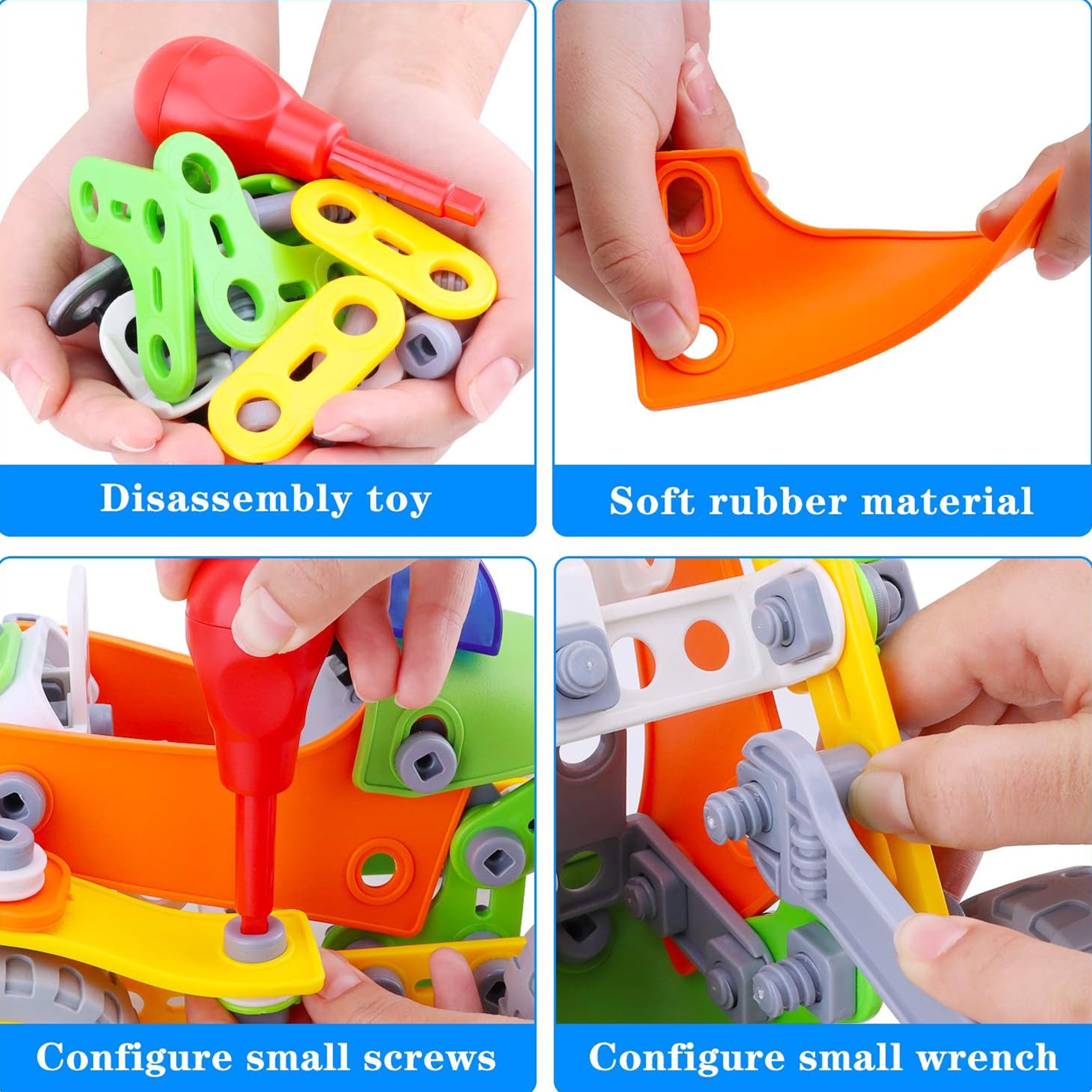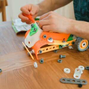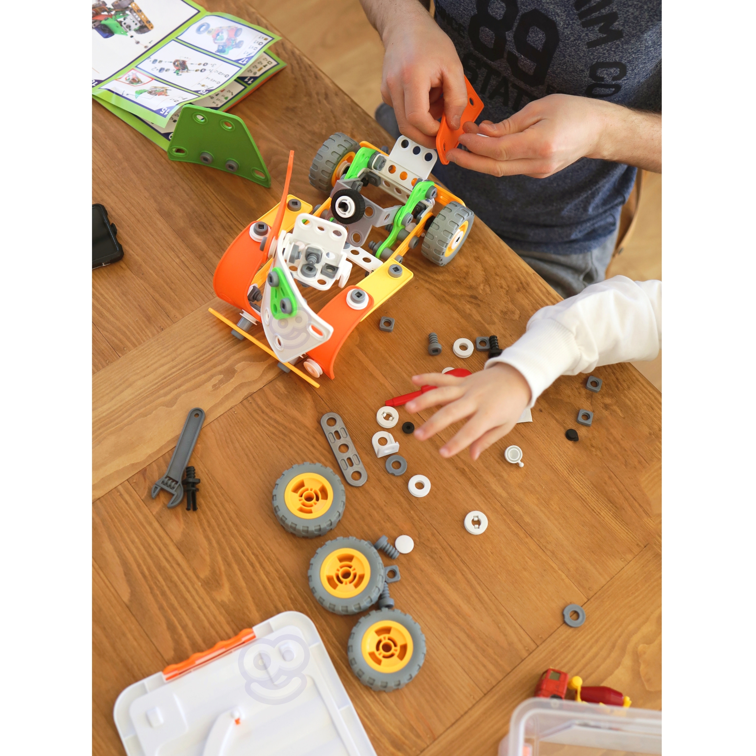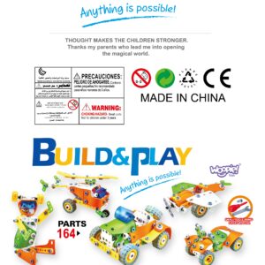 Ehitustelliste komplekt 164 El. 5in1 kaubamärgilt WOOPIE on ideaalne valik igale lapsele, kellele meeldivad ehituslikud väljakutsed ja kes soovib arendada oma käelisi oskusi. Selle komplektiga mängimine võib olla ka suurepärane viis õdede-vendade või sõpradega koos aega veeta, koostööd õppida ja ideid jagada. 164 painduvast elemendist saavad lapsed luua koguni 5 erinevat mudelit sõidukitest ja masinatest: auto, quad, helikopter, lennuk ja robot. Tänu uuenduslikele paindlikele osadele võimaldab komplekt mitte ainult ehitada, vaid ka konstruktsiooni lihtsalt lahti võtta ja kokku panna, mis võimaldab luua palju erinevaid kombinatsioone. Komplekt on ideaalne kingitus lastele, kes hakkavad lõbusalt avastama ehitus-, inseneri- ja mehaanikamaailma! Omadused: – Mänguasi vanusele 5 ja vanematele – 164 painduvat elementi – Võimalus luua liikuvaid osi (nt liikuva kopaga ekskavaator) – Kvaliteetsed materjalid, ohutu lastele – Ideede puudumisel sisaldab komplekt üksikasjalikke juhiseid, mis aitavad sõidukit ehitada – Ideaalne kingitus jõuludeks või sünnipäevaks! – Komplekt võimaldab ehitada 5 erinevat sõidukit: robot, lennuk, quad, džiip ja helikopter. Komplekt arendab: – loovust ja kujutlusvõimet, – loogilist mõtlemist, – käelisi oskusi ning motoorset ja sensoorset koordinatsiooni, sh kujundite valimise ja värvide eristamise oskust, – ruumilist mõtlemist. Komplekti kuuluvad: – Erineva kujuga klotsid, – Kruvikeeraja ja otsmutrivõti, – Mutritega kinnituskruvid, Rattad, – Piltjuhised 5 erineva sõiduki ehitamiseks ehitusplatsilt,