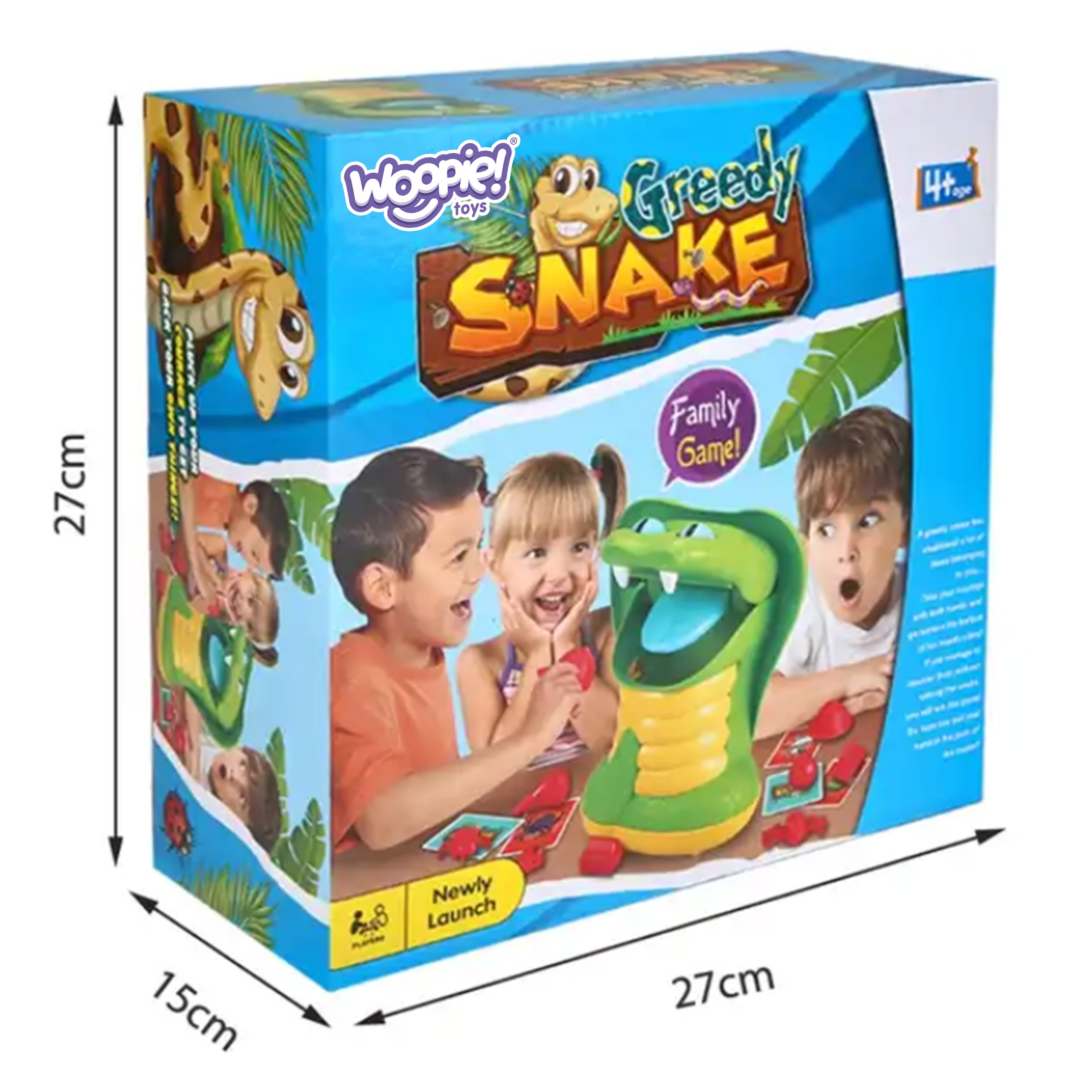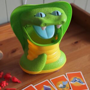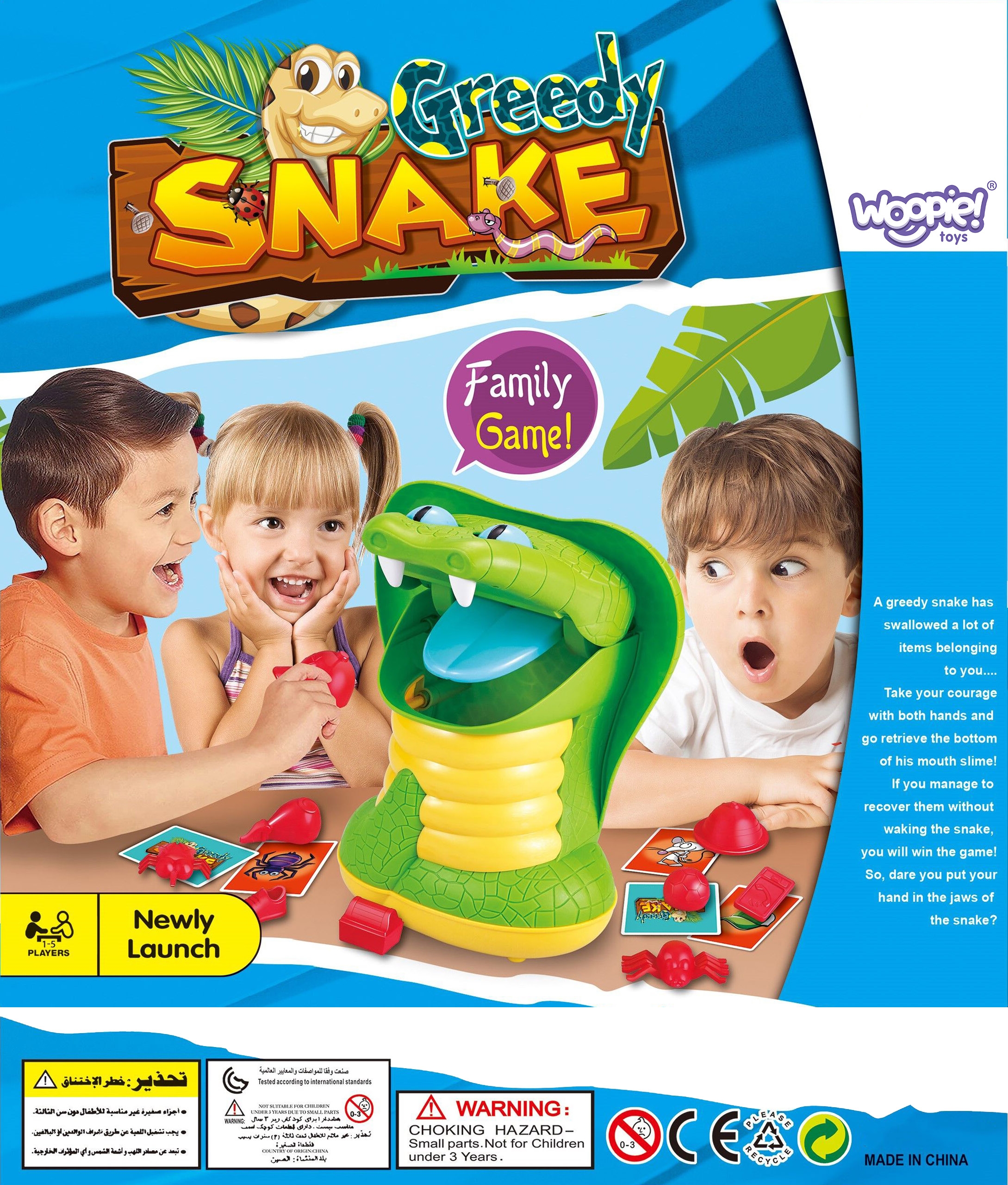 Greedy Snake Arcade Game kaubamärgilt WOOPIE on mäng, mis sobib ideaalselt sünnipäevaks, pereõhtuks ja muudeks sündmusteks. Mäng nõuab keskendumist ning kompimismeele ja kujundite tunnetamist. Meie lõbus arkaadne peremäng GREDY SNAKE on lastele alates 3. eluaastast. Omadused: – mäng lastele alates 3. eluaastast – mitmikmäng 1 kuni 5 mängijale – ei vaja patareisid – treenib laste väledust ja osavust – meeldivad värvid Mängureeglid: Ava ussi suu ja aseta esemed, mida joonistad, tema kõhtu. Iga mängija tõmbab kordamööda kaardi esemega MÄNGE! madu võib igal ajal oma suu sulgeda ja sind hammustada, ta on väga näljane, seega ei pea ta lahtise suuga kaua vastu. Võidab see, kes võtab välja loositud esemed välja ilma, et teda hammustaks. Madu on mängu ajal väga näljane ja vihane, kui mängija otsib oma suust mõnda eset pikka aega, siis paneb ta selle kinni ja mängija kaotab. Komplekti kuulub: – madu – 10 pildikaarti – 10 loositavat eset