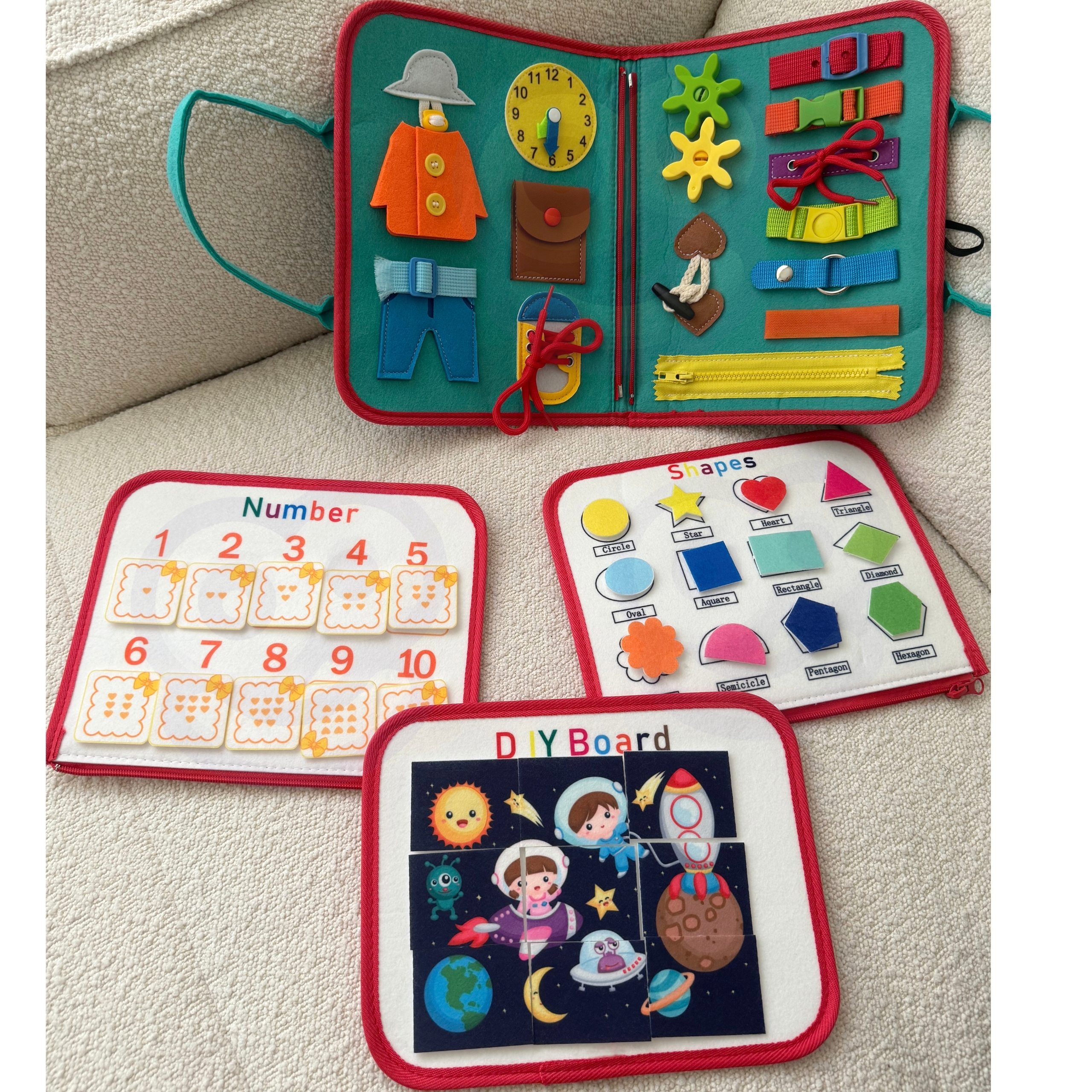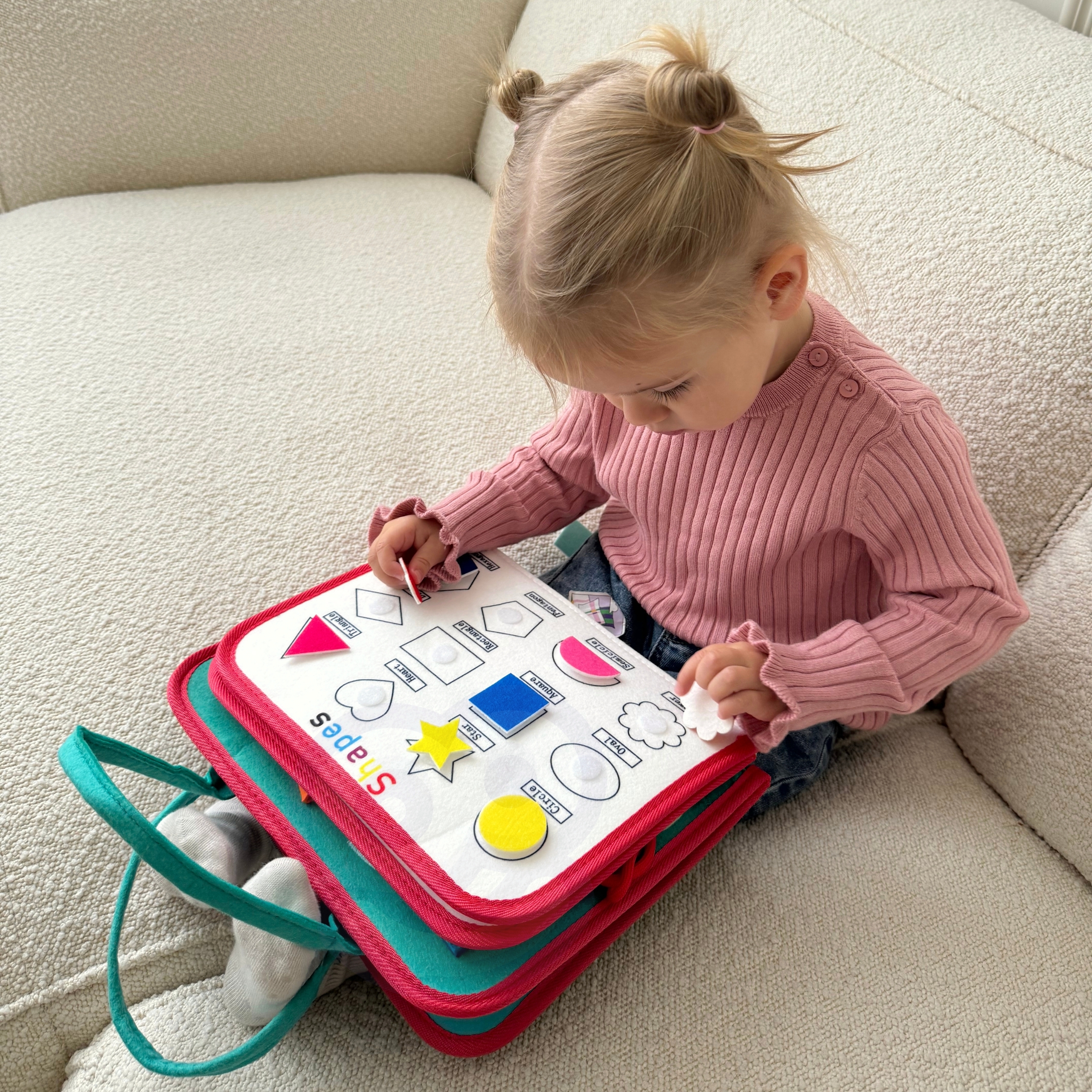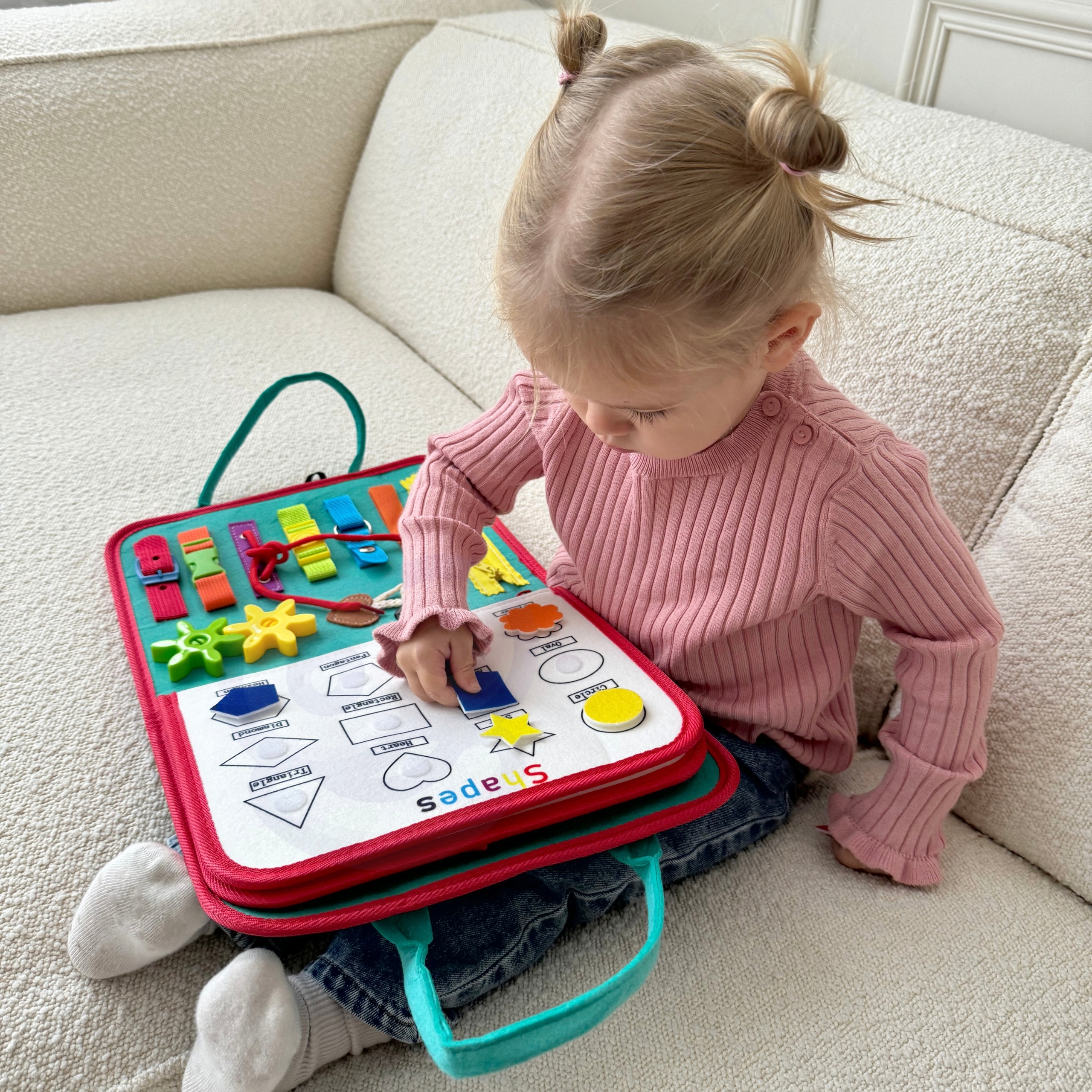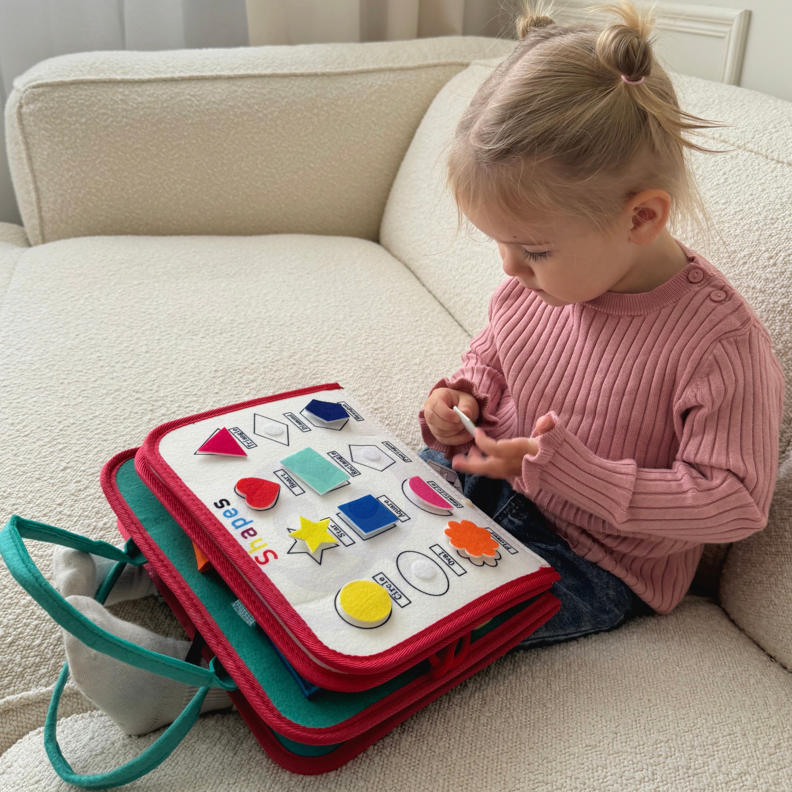 Tutvustage oma lapsele õppimise ja arengu põnevat maailma ainulaadse hariva raamatuga kaubamärgilt Woopie. Kõige väiksematele mõeldes loodud mänguasi on tõeline tööriist, mis toetab võtmeoskuste arendamist juba varases eas. Sangadega kohvri kujul olev raamat peidab endas kaheksa kihti täis erinevaid tegevusi, mis mitte ainult ei lõbusta, vaid ka õpetavad. Tänu sellele saavad lapsed õppida värve, numbreid, kujundeid, tähestikku, samuti arendada käelisi oskusi ja loogilist mõtlemist. Tänu sellele mänguasjale õpivad lapsed mängu kaudu, parandades samal ajal peenmotoorikat, käe-silma koordinatsiooni ja kognitiivseid oskusi. See on ideaalne valik lapsevanemale, kes soovib toetada oma lapse terviklikku arengut, hoolitsedes oma hariduse ja loovuse arendamise eest igas kasvuetapis. Tänu käepärasele disainile on mänguasja lihtne kaasas kanda, mistõttu on see ideaalne nii väikestele kui ka suurtele reisidele. Omadused: – Igas vanuses lastele sobiv mänguasi, mis pakub ülesandeid lihtsast värvituvastusest kuni loendamiseni, tundide õppimise ja kingapaelte sidumiseni. – Sisaldab 8 kihti, mis on täis erinevaid tegevusi, millest igaüks pakub ainulaadseid harivaid ülesandeid, näiteks: värvide, numbrite, tähestiku, geomeetriliste kujundite, tundide, nädalapäevade õppimine ja käelised harjutused, nagu kingapaelte või -kinnituste sidumine. – Eemaldatavad Montessori kihid. Tahvli kihid on tänu tõmblukule kergesti eemaldatavad, mis võimaldab igaühega eraldi mängida. – Kõik elemendid on kirjeldatud, mis muudab lastel värvide, kujundite ja nädalapäevade äratundmise lihtsamaks, toetades nende autonoomiat ja iseseisvust õppimises. – Valmistatud pehmest vildist, ilma väikeste osade või liimijälgedeta, mistõttu on see väikestele lastele ohutu valik. – Praktiline ja käepärane disain. Mänguasi arendab: Oskuste ja kognitiivsete võimete arendamist peenmotoorikat Loogilist mõtlemist Sensoorsed oskused Käe-silma koordinatsiooni
