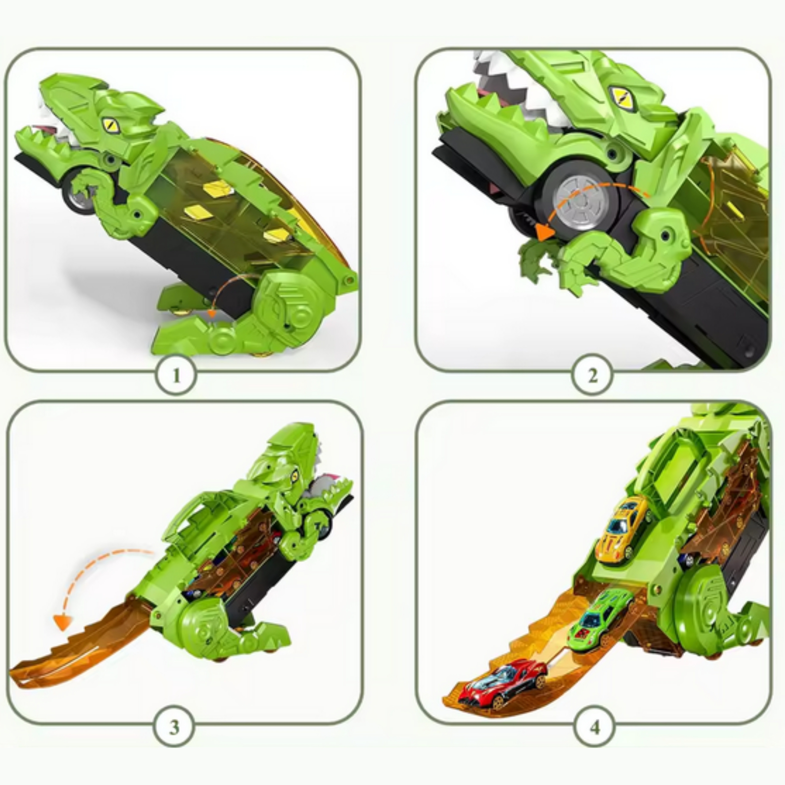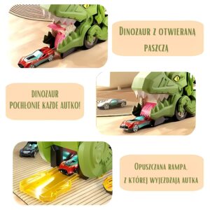Sukelduge eelajalooliste seikluste ja autosõidu põnevasse maailma! See imeline dinosauruste sööja koos Woopie kaubamärgi autodega on tõeline maiuspala igale väikesele sõidukite ja eelajalooliste olendite fännile. Dinosauruse veoauto mitte ainult ei mahuta kogu autode komplekti, vaid toimib ka interaktiivse liumäena ja on mugav käepidemega kohver. Lahtivoldituna muutub mänguasi võidusõidurajaks, millel kinnitatud autod saavad sõita. Komplektis on koguni 12 väikest sõidukit, nii et melu võib kesta tunde – üksi või koos sõpradega! Liikuvad elemendid, nagu avanev suu, dinosauruse käpad või langetav kaldtee, toovad sisse interaktiivsuse lisamõõtme, arendades samal ajal lapse käelisi oskusi ja kujutlusvõimet. Kogu asi on valmistatud tugevast, turvalisest materjalist, mis on vastupidav intensiivsele mängule. Tänu kokkupandavusele ja mugavale käepidemele sobib komplekt suurepäraselt nii koju kui reisile. See on ideaalne mänguasi lastele, kes armastavad sõidukeid, dinosauruseid, aga ka loomingulisi konstruktsioone ja dünaamilist mängu. Sellest komplektist saab kindlasti teie lapse kollektsiooni lemmik! Omadused: – Mänguasi lastele alates 3. eluaastast – Dinosauruse veoauto toimib käepidemega mugava kohvrina – Kokkupandav liumägi ja võidusõidurada – Liigutavad elemendid – dinosauruse avanev suu, lahtikäivad kaldteed, interaktiivsed rajafragmendid – Kõik autod mahuvad kohvri sisse, mis aitab õppida korda hoidma ja ruumi organiseerima. – Valmistatud vastupidavatest, ohututest ja mittetoksilistest materjalidest, vastupidav intensiivsele mängule – Ümar viimistlus tagab ohutuse iseseisval mängimisel – Erksad värvid ja rafineeritud detailid rõõmustavad iga last ja muudavad komplekti lemmikmänguasja Komplekti kuulub: – kohvrifunktsiooniga dinosauruse veoauto – 12 värvilist metallkorpusega autot Mänguasi arendab: – käsitsi mõtlemisvõimet – loogilist kujutlusvõimet – sotsiaalne integratsioon koos lõbusalt aega veetes