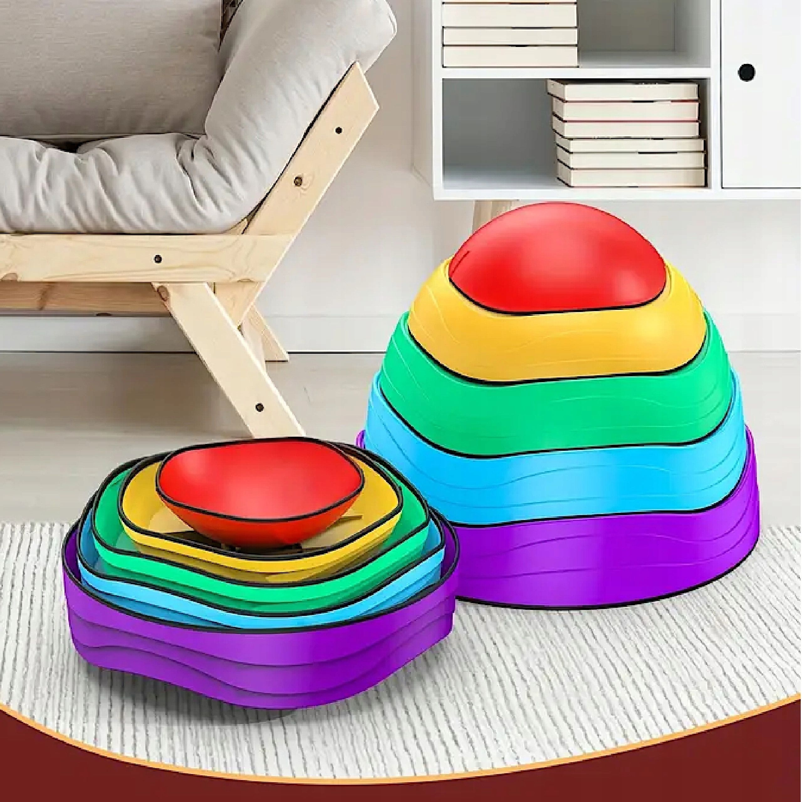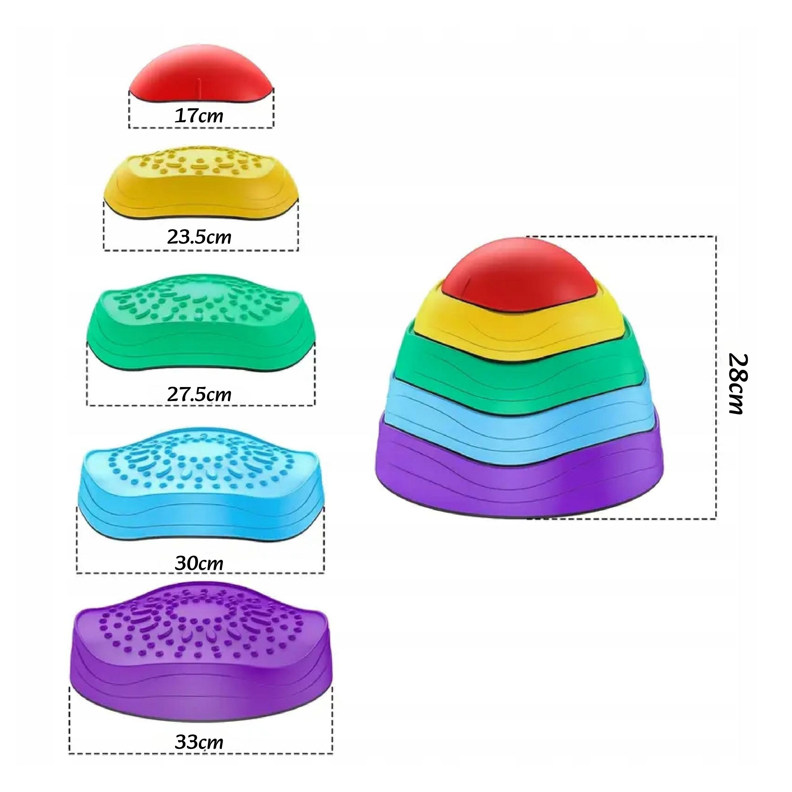 Woopie värviliste sensoorsete kivide komplekt on tõeline maiuspala väikestele avastajatele! Need pehmed, erineva suuruse ja tekstuuriga puudutamisel meeldivad kettad on palju enamat kui tavaline mänguasi – need on multisensoorne tööriist tasakaalu, koordinatsiooni ja ruumilise kujutlusvõime toetamiseks. Laps saab neid paigutada mis tahes konfiguratsioonis, ehitada torne, luua takistusradasid või mängida nende pinnal kõndides. Intensiivsed värvid ja mitmekesised tekstuurid ergutavad meeli ning võimalus järjestada elemente lõpmatu arvu kombinatsioonidena tähendab, et mäng ei hakka kunagi igav. Omadused: – Lastele alates 3. eluaastast – Kvaliteetsetest materjalidest – Erineva suurusega elemendid võimaldavad ehitada püramiide ja kõiki elemente hõlpsasti hoiustada – Erinevad tekstuurid elementidel, mis on ideaalsed puutetundlikkuse stimuleerimiseks – Libisemisvastane alus tagab stabiilsuse ja ohutuse mängu ajal Komplekti kuulub: – 5 erinevas suuruses värvilist kivikest – Loomingulisus arendab: – Mänguasi arendab tasakaalu
