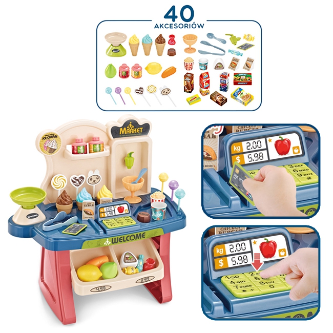 WOOPIE Shop Supermarket Ostukorv Jäätisega maiustused + 40 tarvikut