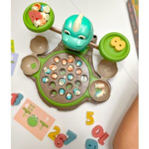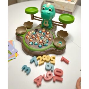 Brändi WOOPIE tasakaalutulega dinosaurus julgustab sind tundma õppima maailma, numbreid ja matemaatilisi tehteid ning õppimise vahepeal puhkama dinosauruste püügiks! Alusel on liigutatav kilp, millelt saab püüda väikseid dinosauruseid. Lüliti asub esiküljel paremal. Kui asetame nupu keskele, hakkab ketas pöörlema, lõpuni paremale nihutades kuuleme meeldivat meloodiat, mis meid mängides saadab. Sihverplaadi taga on suur dinosaurus, mille peal saame kaaludega mängida. Dinosauruse taga on ruumi õngeritvade jaoks, nende külge saab komplektist lehti kinnitada. Kilbi külgedele asetame kaks kinnist muna, kuhu saame kinnipüütud dinosaurused peita. Komplektis on 10 raskust, üks kaal vastab ühele komplekti kuuluvale loomale, st kaal 1 vastab ühele dinosaurusele, kaal 2 – vastab kahele dinosaurusele jne. Lisaks on ka kaardid tegevuste ja vastustega. See mänguasi ergutab suurepäraselt kujutlusvõimet, ergutab loovat ja ebatavalist mõtlemist ning arendab ka kõige väiksemate laste käelisi oskusi ning pakub õppimisel ka palju nalja. Omadused: Mänguasi vanusele alates 3. eluaastast Arendab käelisi oskusi Ergutab loovat ja ebatavalist mõtlemist Ergutab kujutlusvõimet Õpetab lugema Komplekti kuulub: Kaaluga alus ja dinosauruste püügimäng 10 kaalunumbrit 1-10 21 dinosaurust 2 õngeritva 2 kaarti 2 kaanet 10osamere munadele. width=”467″ height=”831″ src=”https://www.youtube.com/embed/gFBE4ACVAgY” title=”WOOPIE Skaalamäng Eelajaloolisi dinosauruseid õppivate beebide püüdmiseks” frameborder=”0″ allow=”kiirendusmõõtur; autoplay; clipboard-write; web-encrypted-picture”;- gyroscopicture; referrerpolicy=”strict-origin-when-cross-origin” allowfullscreen>