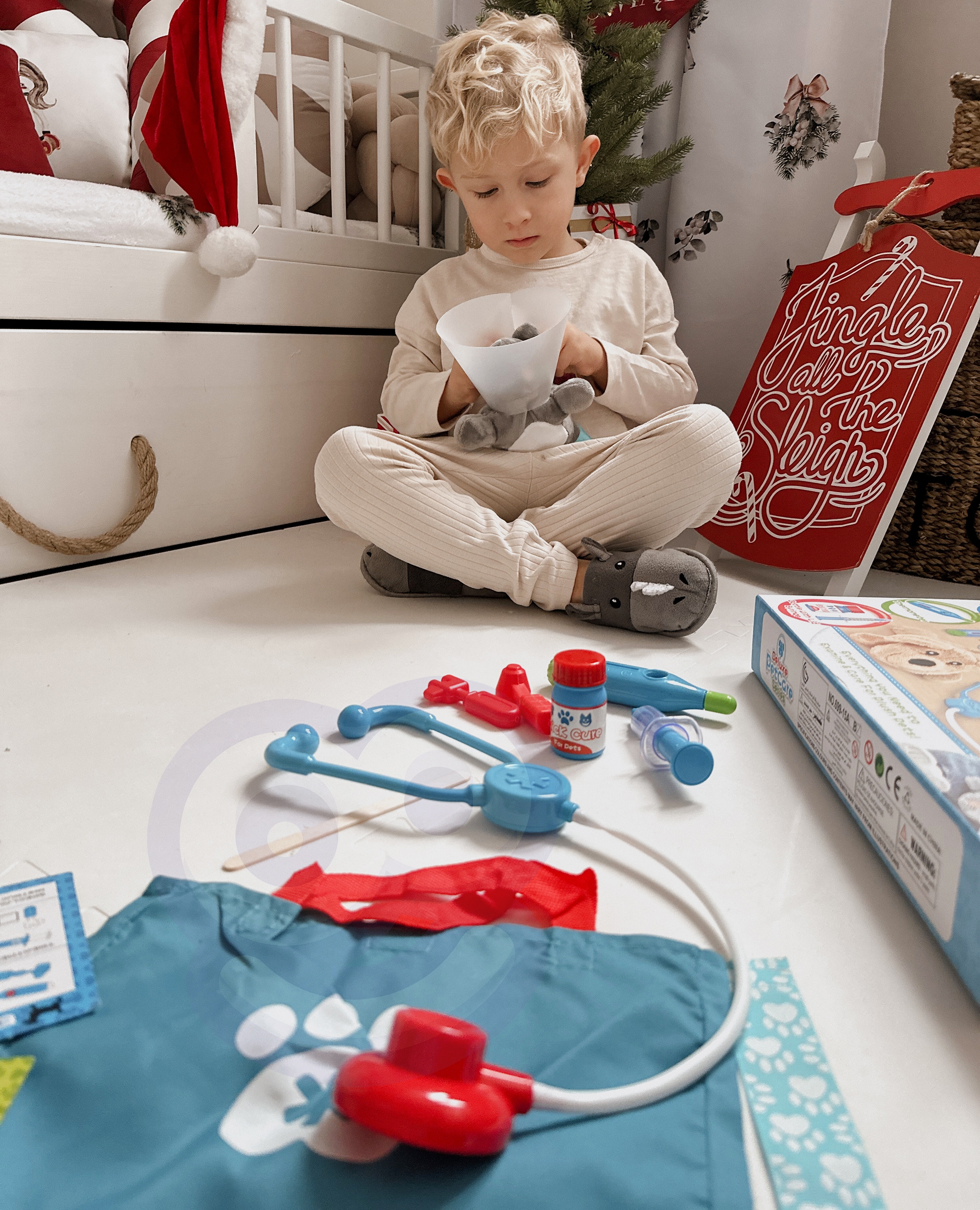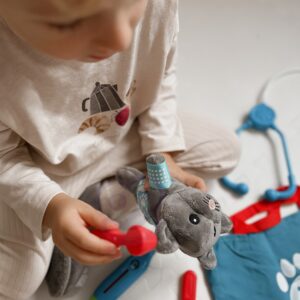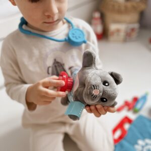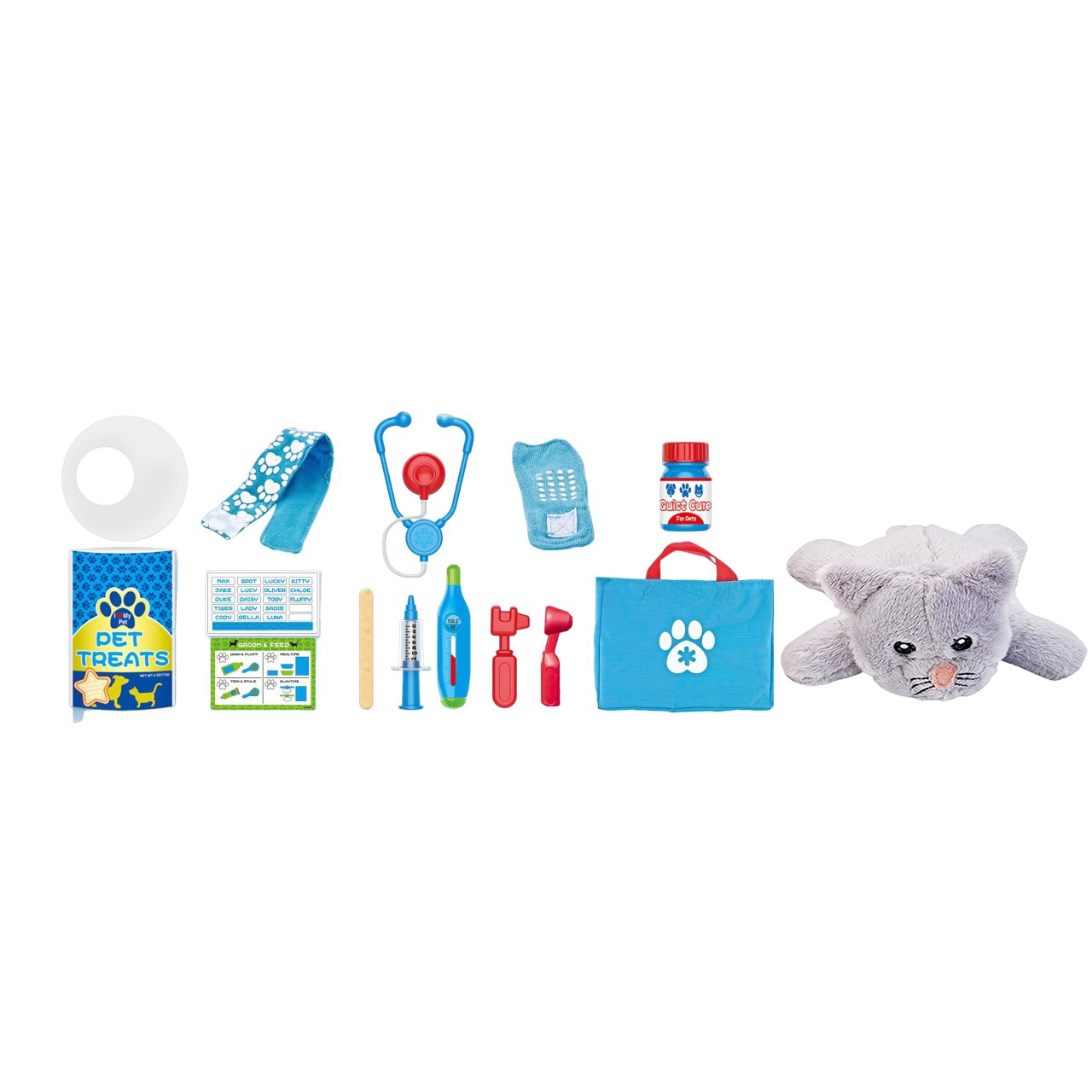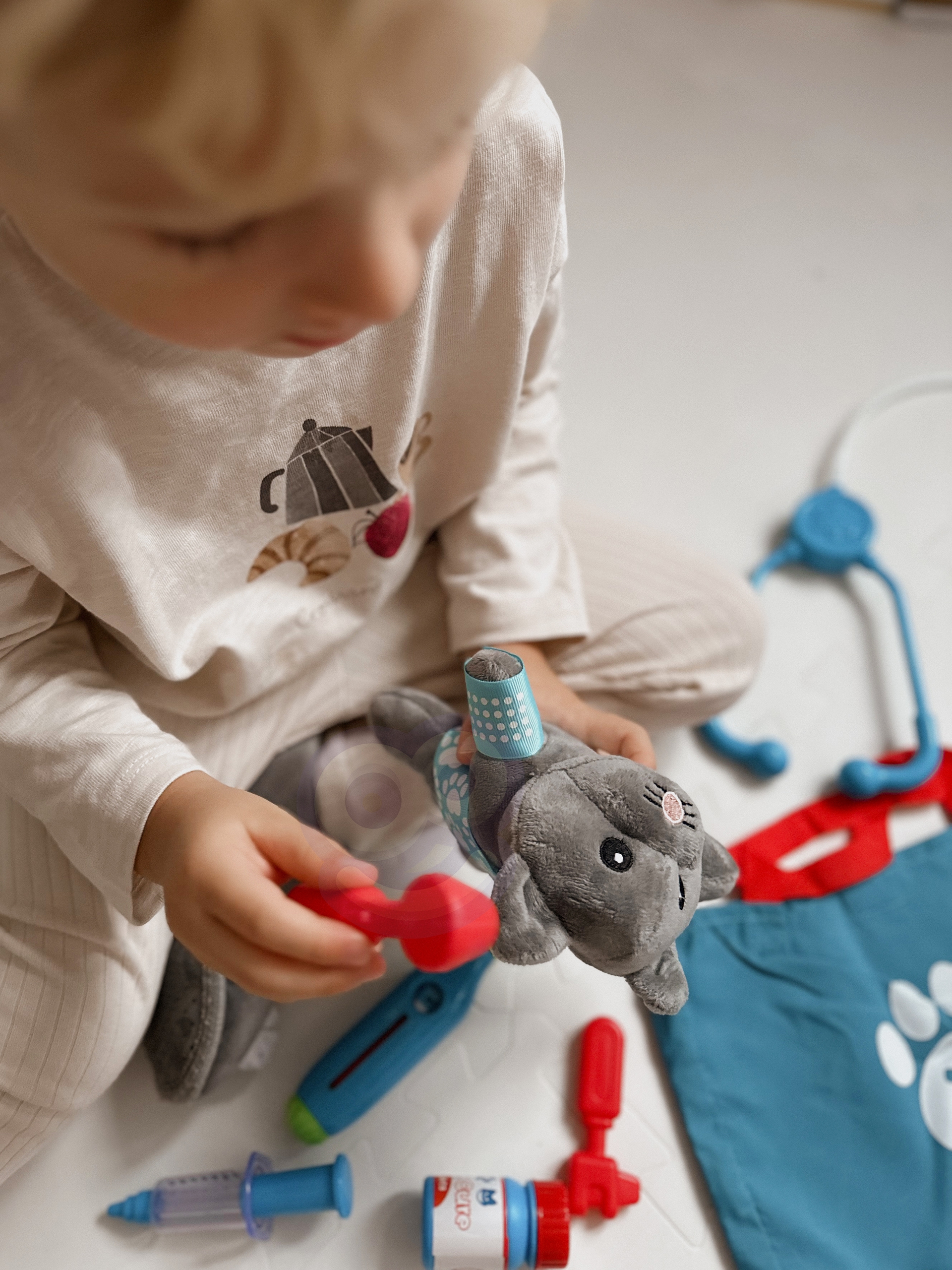 WOOPIE kaubamärgi väike veterinaarkomplekt on ideaalne pakkumine kõigile loomasõpradele ja mängivale loomaarstile. Komplektis on 15 eset, sealhulgas: topis/kass, stetoskoop, ravimid, süstal, kaelarihm ja palju muud. Komplekt võimaldab teil ravida oma lemmiklooma ning samal ajal õpib teie laps empaatiat ja omandab sotsiaalseid oskusi. Loomade eest hoolitsemine on ka vastutustunde õppimine. Tänu mugava käepidemega kaasaskantavale kotile saab laps oma lemmiklooma kõikjal kaasa võtta ja temaga mängida. Loomaarsti mänguasi – rollimäng – avaldab positiivset mõju lapse arengule, ergutab kujutlusvõimet ja loovust. Omadused: – mänguasi vanuses 3 ja vanematele – komplekti saab voldida kotti – kaasa võtta igale poole – rollimäng – väike loomaarst – õpetab vastutustunnet – ergutab empaatiat, kujutlusvõimet ja loovust – värviline pakend, sobib ideaalselt kingituseks Komplekti kuulub: – topis/kass – sinine kott – stetoskoop ja süstlas – palju ravimeid – krae